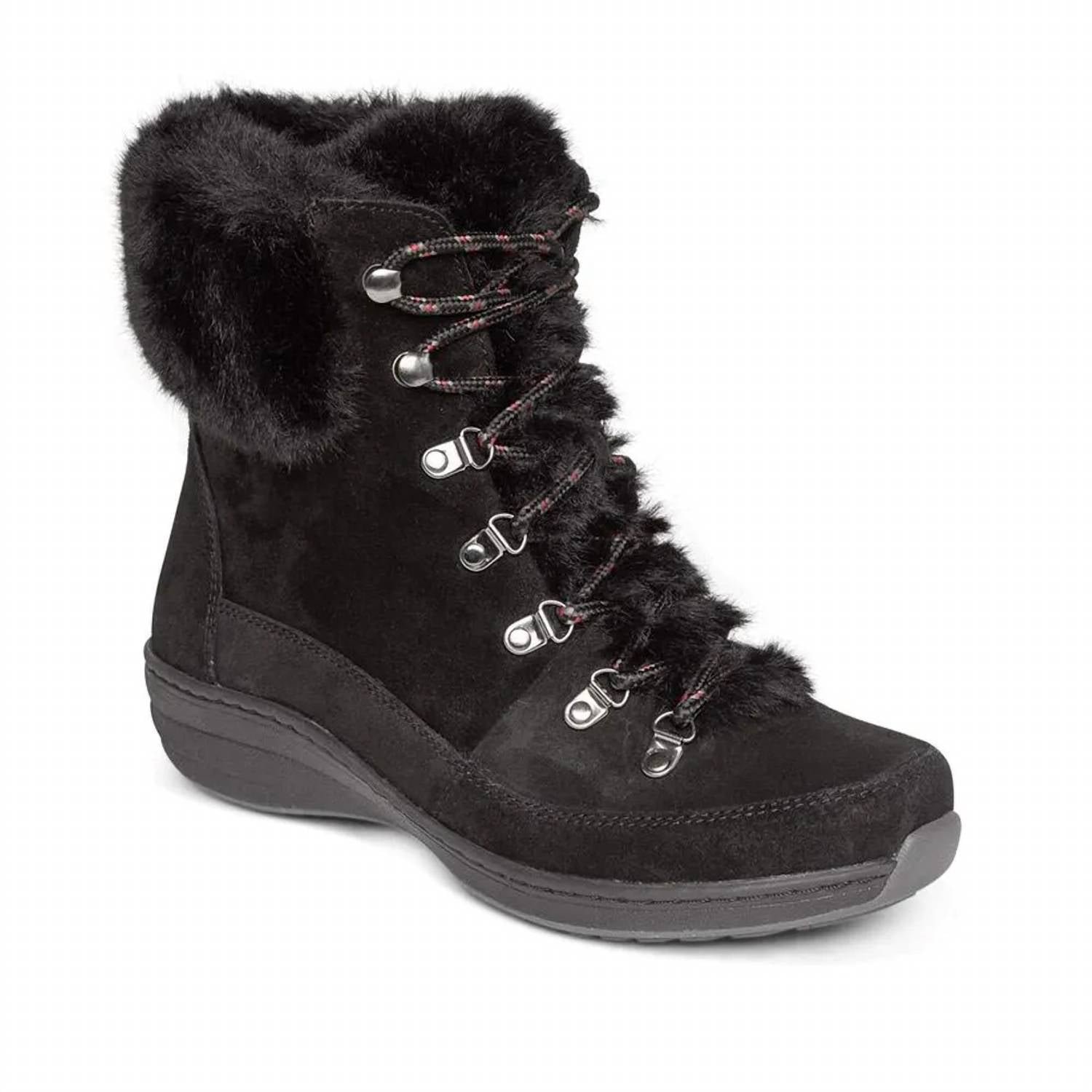 Upgrade your shoe game with these stylish lace-up boots, designed to merge sophistication and comfort. You’ll be reaching for these shoes season after season.Whether you’re hiking in the mountains or running errands, the faux fur lining, waterproof upper materials, arch support and slip resistant outsole will keep you warm and supported.Mid calf height ankle bootUpper Material: Waterproof construction with Genuine Leather and Faux FurPadded collar for extra comfortSlip resistant outsoleLining Material: Neoprene to stretch and insulate with plush faux furWarmth Rating: Up to -20 C/ -4 FRemovable InsoleHeel Height: 1.125′