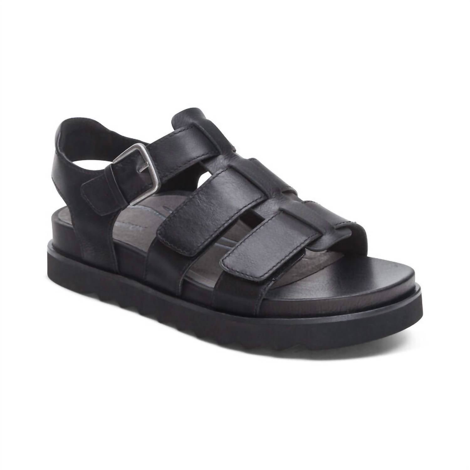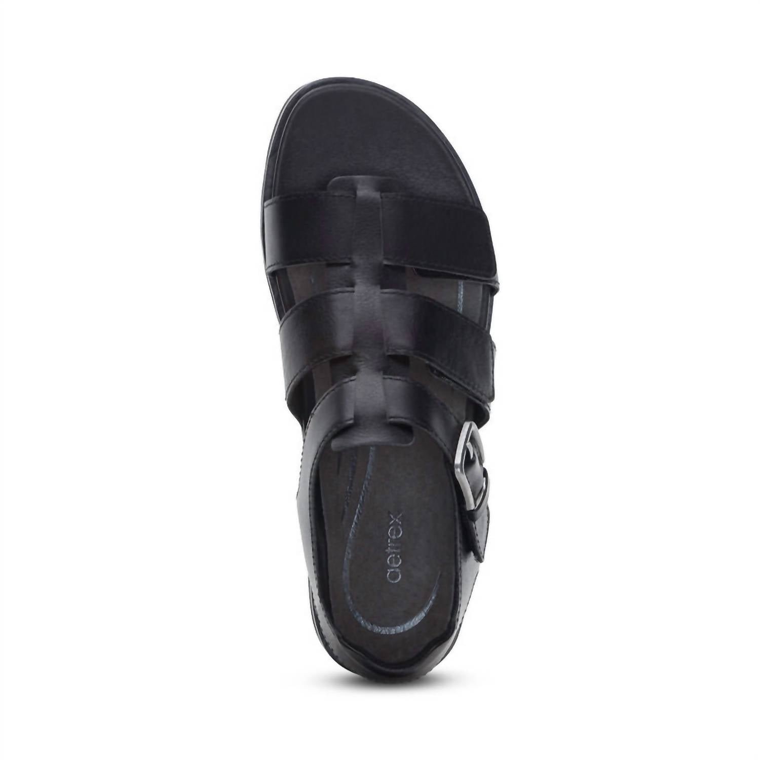 This sandal will take you from brunch to dinner and everything in between.Step up your resort wardrobe with the Aetrex Women’s Romy Hook & Loop Sandal, a blend of fun and luxury in versatile black. Featuring a fully adjustable quarter strap and hook & loop closures, these sandals ensure a tailored fit for every foot. Crafted with a leather upper and footbed for lasting durability, complemented by a rubber sole for superior traction, they offer unrivaled comfort. With a low 1.5′ flat heel and built-in orthotic support, the Romy Sandal is your perfect summer companion for stylish vacations or Mother’s Day gifting.