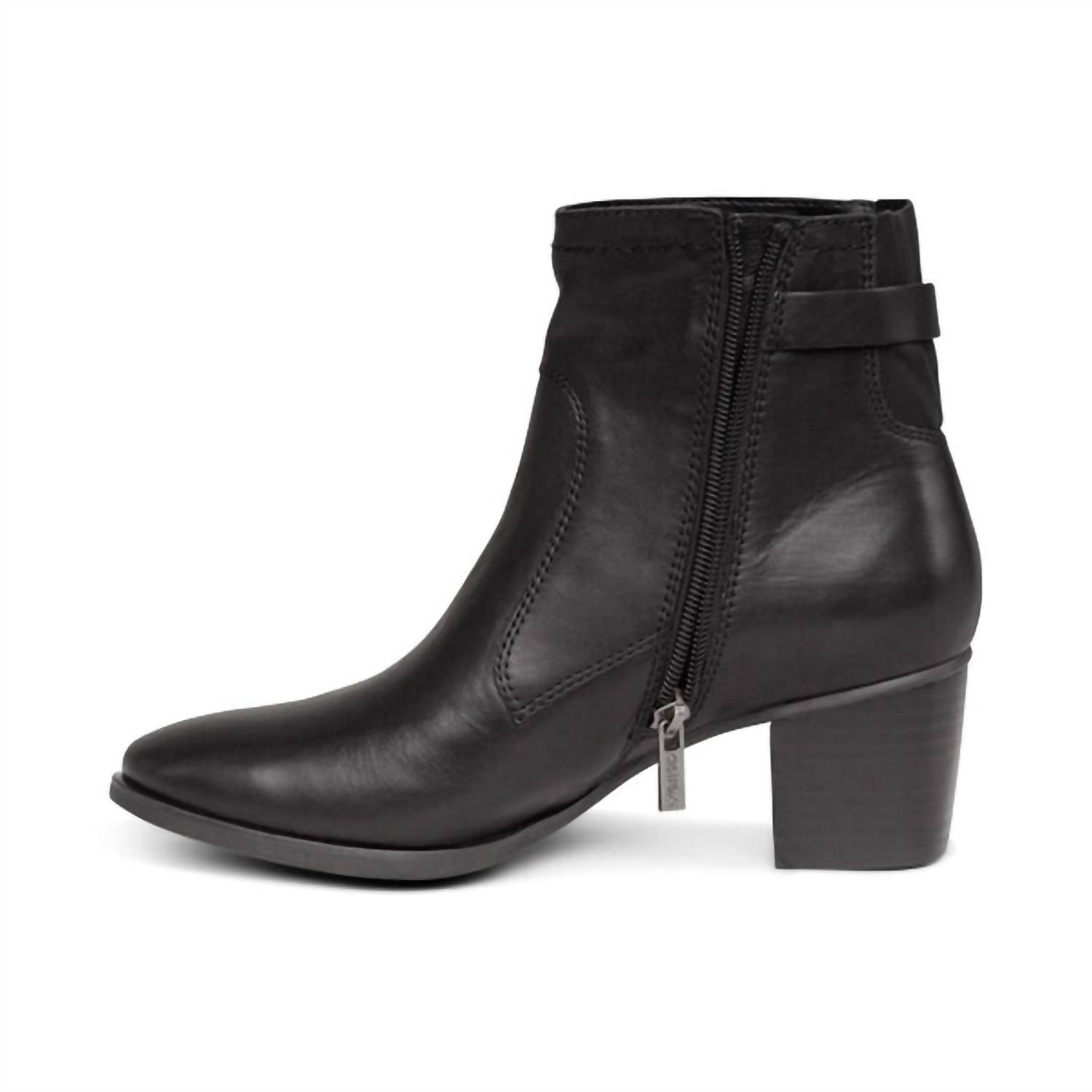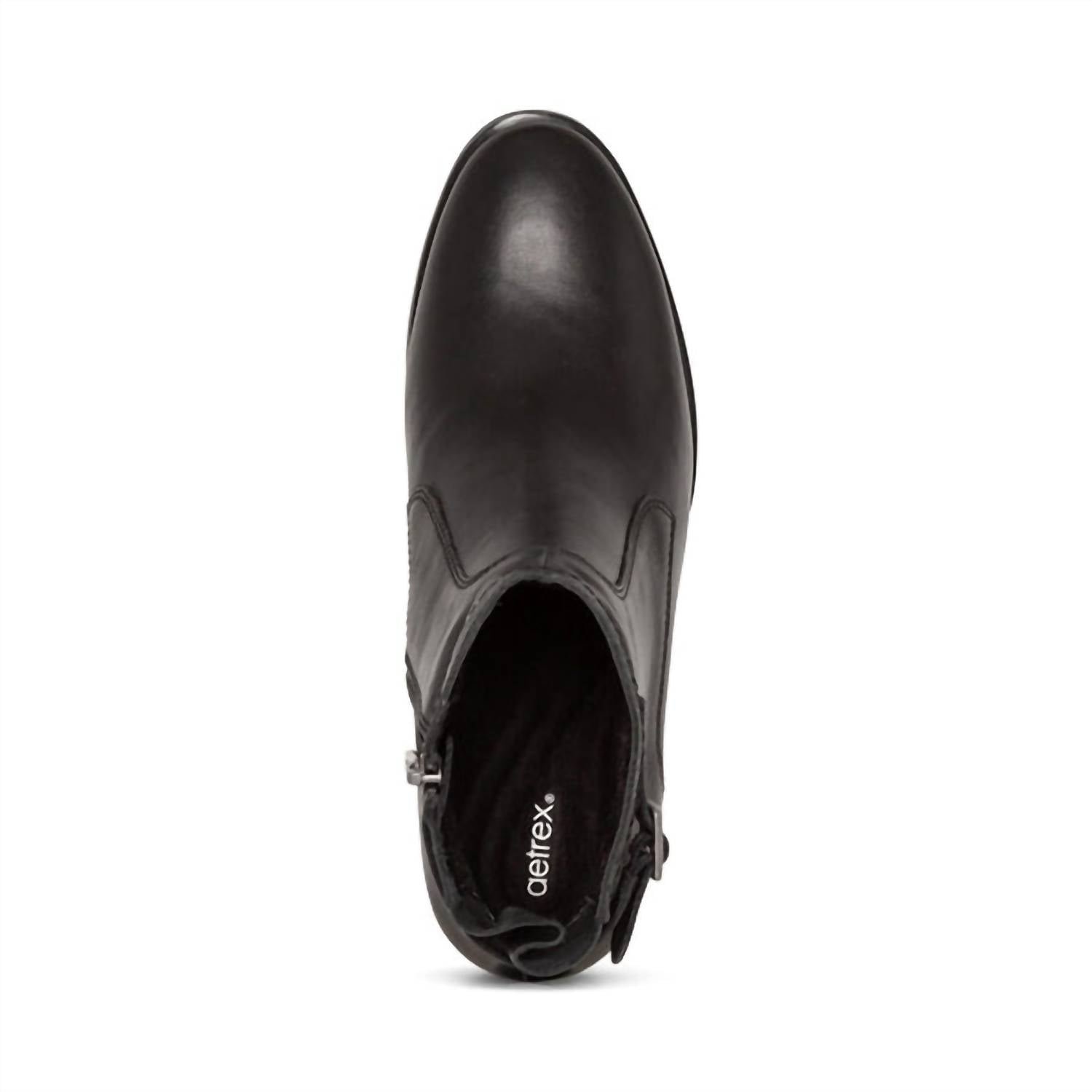 Say hello to the perfect, most versatile boot. The ankle height makes this style easily transition from day to night. Wear them with your favorite skinny jeans and tee for a more laid back look, or pair them with your favorite mini dress and jacket for a night out on the town.The Rubi ankle boots are a versatile addition to any wardrobe, pairing effortlessly with everything from jeans to dresses. Designed with built-in arch support, they promote healthy alignment and help reduce common foot pain, including plantar fasciitis. The boots feature cushioned insoles for pressure relief and all-day comfort. Weather-friendly leather uppers and adjustable ankle straps provide a secure fit and protection against rain and puddles. With a lightweight synthetic rubber outsole, removable insole, 2.25′ heel, and a calf height of 5.1′ with a 10.9′ circumference, these boots combine style, comfort, and functionality.