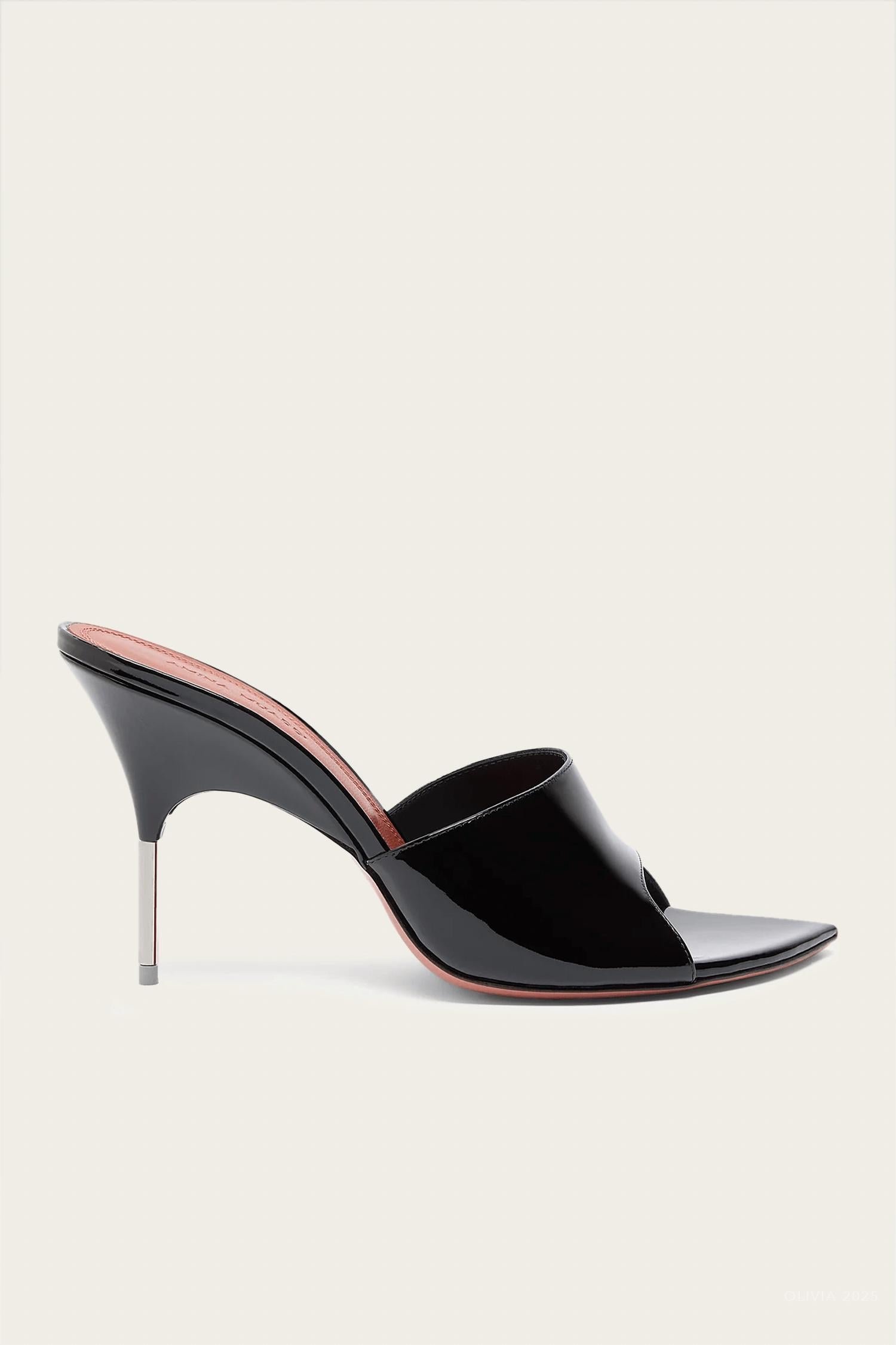 Pair these beauties with your favorite skinny jeans or dress for a night out on the town.Step into elegance with the Women’s Bianca Slipper 95 by Amina Muaddi, showcasing a chic open-toe design in stunning black patent. These high stiletto heels, with a heel height of 3.7 inches, are expertly crafted in Italy, boasting an upper of 100% calfskin leather, lined with luxurious goat leather, and supported by a sole comprised of 70% calf leather and 30% rubber.