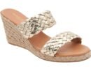 Enhance your summer wardrobe with the Women’s Aria Espadrille Wedge Sandals by Andre Assous. These platino sandals feature an open toe design and approximately 3-inch wedge heels for a chic look that’s perfect for holiday parties. Crafted from luxurious leather with woven jute detailing, they offer both style and comfort thanks to their padded leather insole. Made in Spain, these sandals fit true to size and are ideal for those seeking boho-chic elegance this season.
