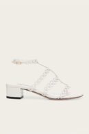 Classicly cute and all-day-wearable. We love this sandal.Step into elegance with the Women’s Infinity Chain Sandal by Aquazzura, a summer essential in crisp white. Crafted with a luxurious combination of crossbred leather for the upper, goat leather lining, and calf leather sole, these sandals promise comfort and style. Designed with a low 1.4′ block heel and a chic open toe, they’re perfect for warm-weather outings. Made in Italy, these sandals follow American sizing and assure a medium width fit.