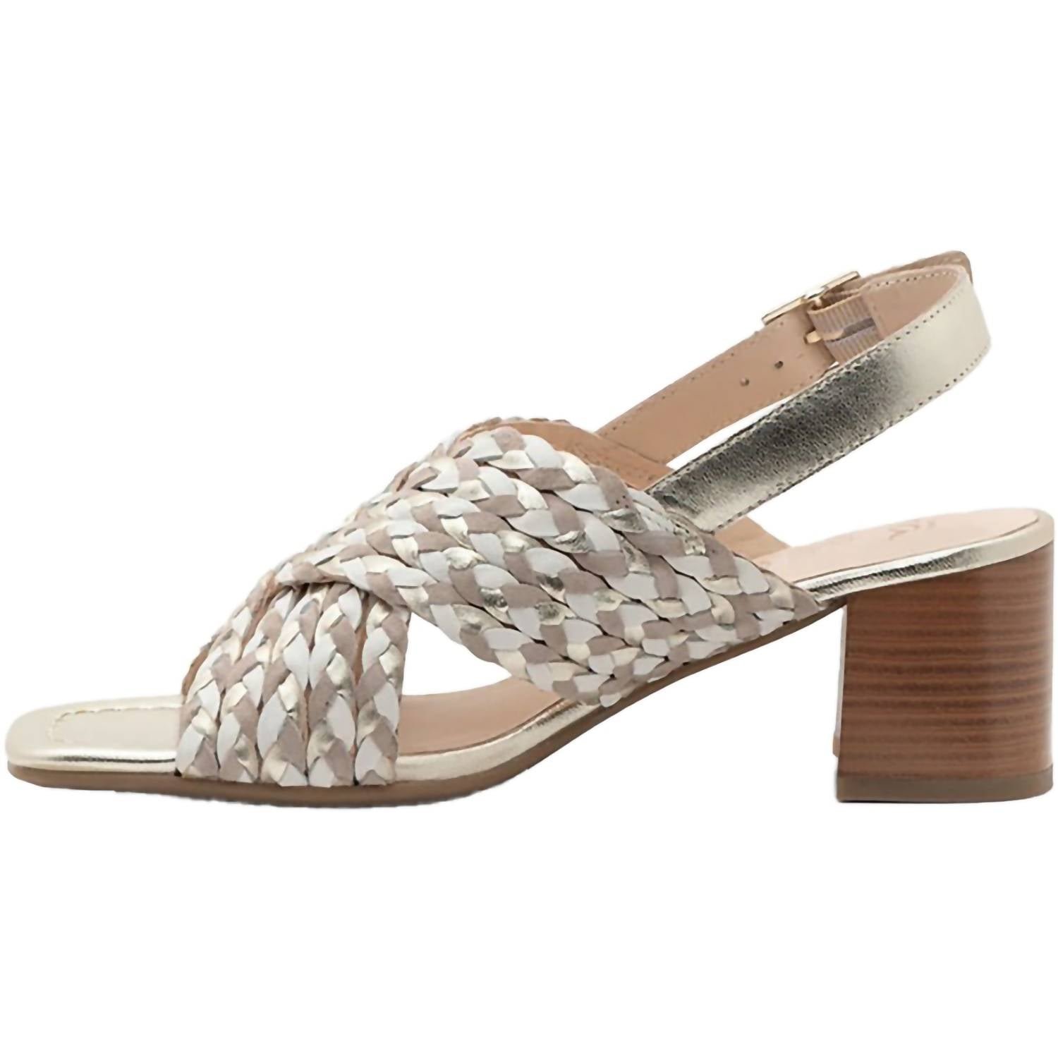 Classicly cute and all-day-wearable. We love this sandal.Step up your summer style with the Women’s Benson Sandals by Ara Shoes in a captivating Cream Metallic Multi. These sandals feature a leather upper with woven straps, an open toe, and a block heel, providing both elegance and stability with a heel height of 50mm. The back strap includes a buckle closure for a secure fit, complemented by a leather footbed lining and anti-slip grip sole for comfort and traction. Designed for boho chic vacation vibes, these versatile sandals will effortlessly elevate any seasonal outfit.