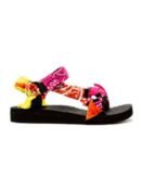 Classicly cute and all-day-wearable. We love this sandal.Introducing the Trekky Bandana Sandal by ARIZONA LOVE, a vibrantly stylish choice in fuchsia for the eco-conscious fashionista. These sandals feature a round toe and flat heel, offering comfort with every step. Crafted with an upper made from recycled plastic bottles, each pair is meticulously handmade and handcrafted. Please note, the fitting runs small, so it is recommended to take one size up.