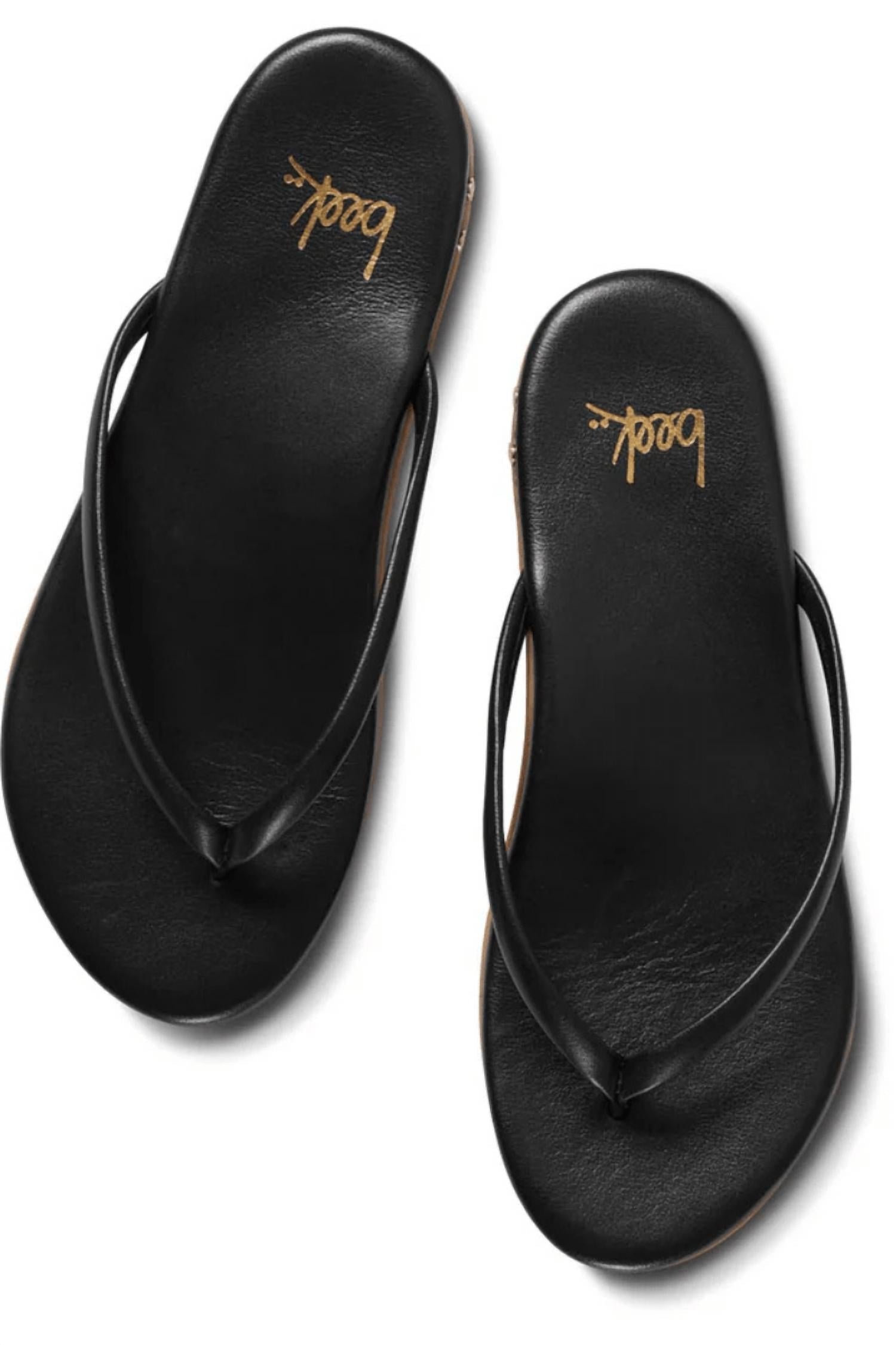 This sandal will take you from brunch to dinner and everything in between.Step into comfort with the Women’s Sunbeam Leather Flip Flop Sandals by beek, crafted from the highest quality black leather for a minimalist summer style. Featuring thin leather-wrapped foam upper straps and a memory foam-padded insole, these open-toe sandals ensure a plush fit. The sandals boast a molded arch for enhanced support, complemented by a rubber outsole for superior grip whether by the pool or sailing the open seas. Ideal for vacation occasions, this flat heel design is perfect for embracing a relaxed yet sophisticated look during the Easter holidays.