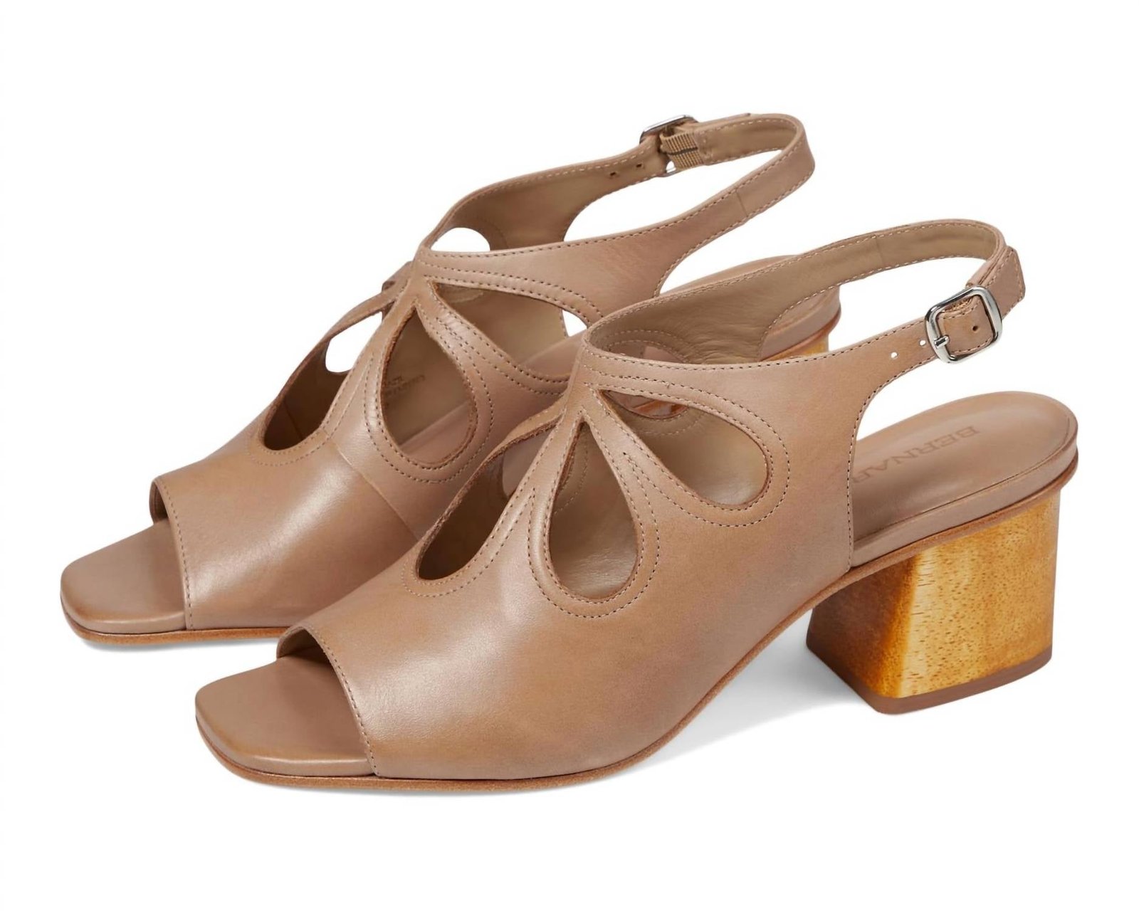 Classicly cute and all-day-wearable. We love this sandal.Crafted in a striking Sand Glove Leather. Featuring an open toe and styled with intricate cutout detailing. Offer both elegance and comfort with a 2.5-inches block heel. Made with a re-tanned calf leather upper and lining. Secured with a slingback buckle strap. Originating from Brazil. Recommended for professional cleaning to maintain their durability.