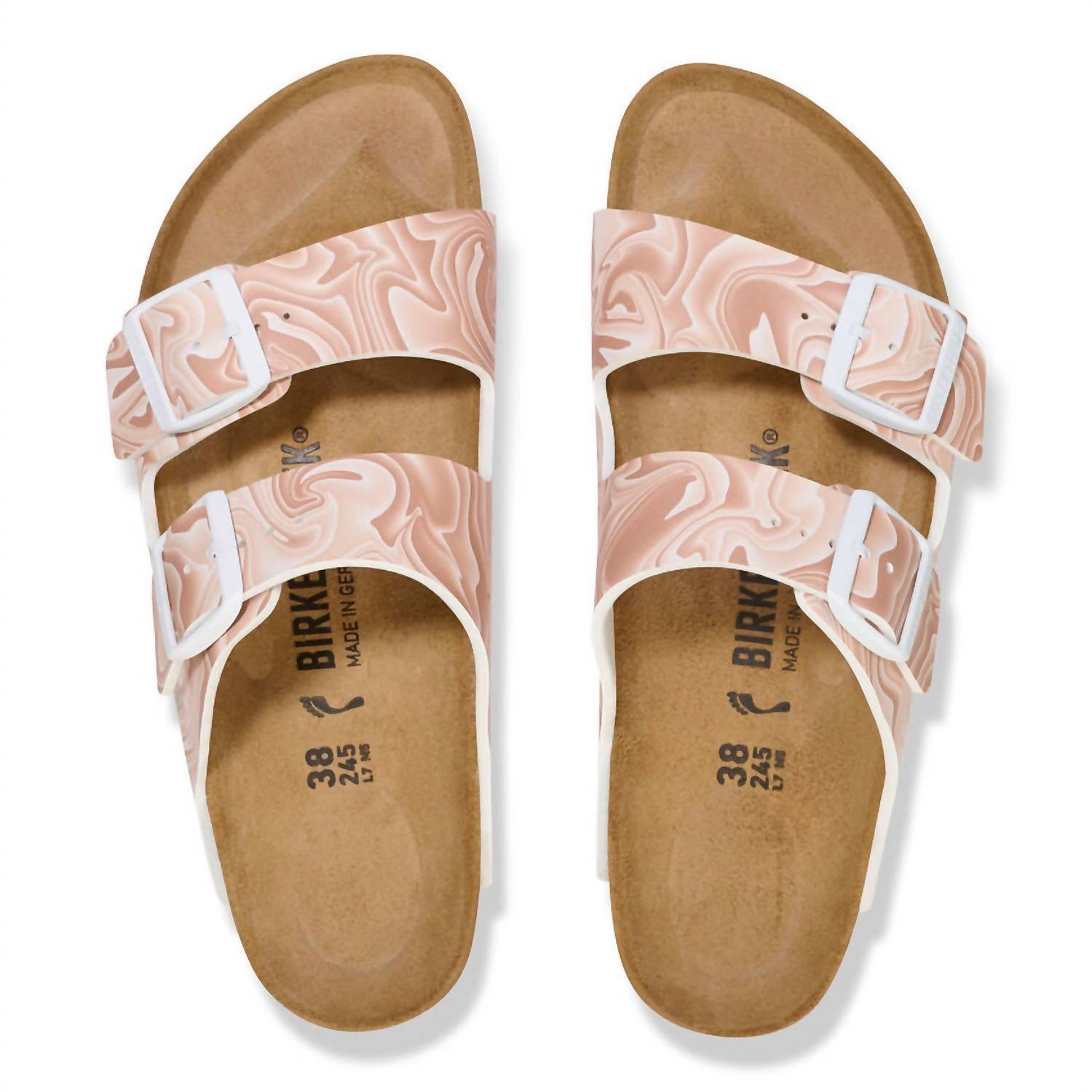 Classicly cute and all-day-wearable. We love this sandal.Step into style and comfort with the Women’s Arizona Sandal by BIRKENSTOCK in Marble Beige, perfect for your summer vacation. Designed with a chic boho flair, these sandals feature an open toe and a flat heel measuring 1′ or under, ideal for all-day wear. Tailored for women, these sandals embody the effortless elegance of summer occasions. Made with precision, the Arizona Sandal is synonymous with casual sophistication and timeless appeal.