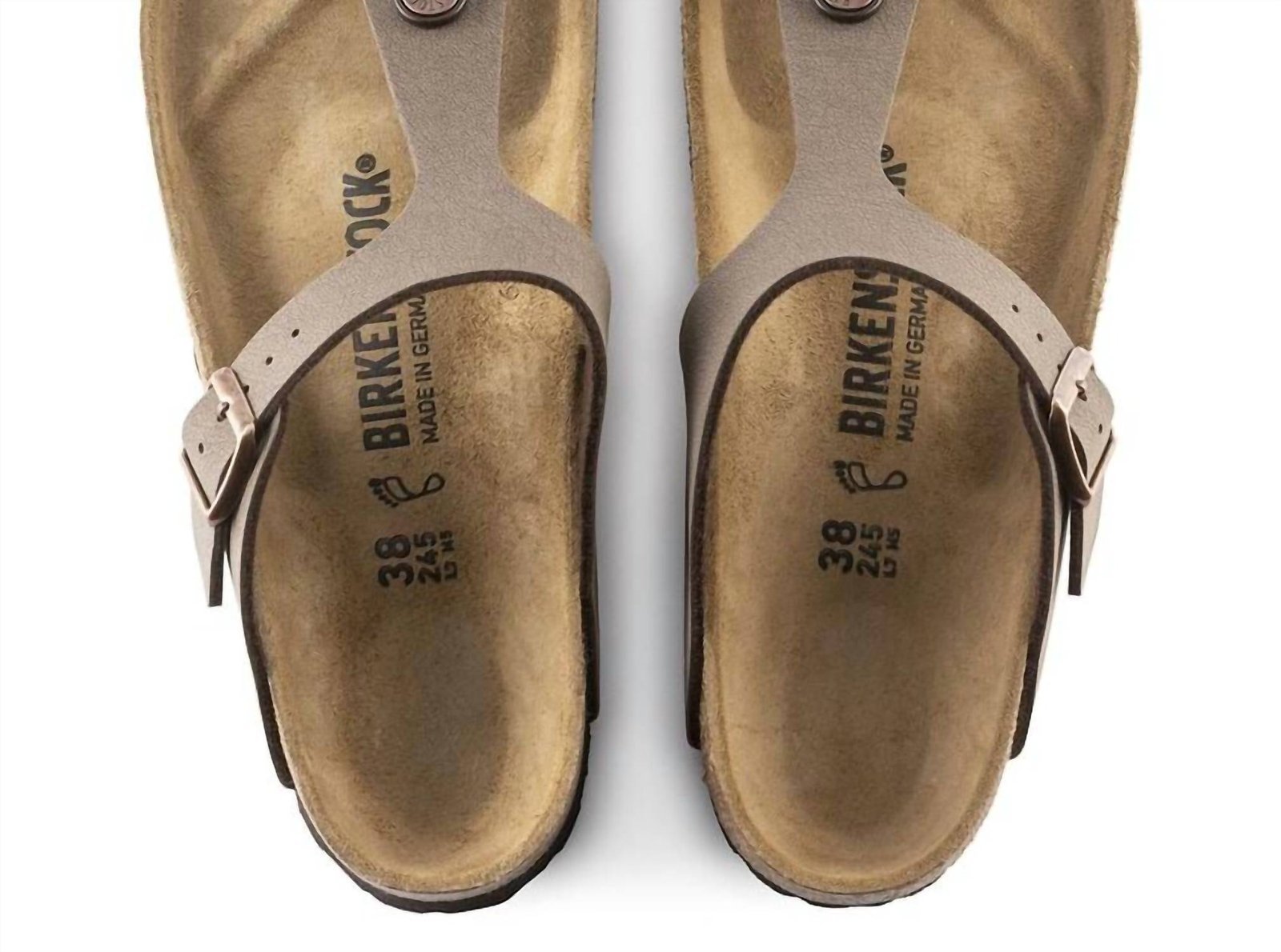 Flowy dresses, cropped pants, and even jumpsuits… this sandal works with them all!Step into summer with the Women’s Gizeh Sandal by BIRKENSTOCK, a perfect blend of comfort and style in a boho chic. Designed with a round toe and flat heel, this sandal features a low heel height between 1 1/4′-2′. The mocha color adds a versatile touch, making it ideal for vacation or casual outings. Embrace these sandals as a summer staple in your wardrobe.