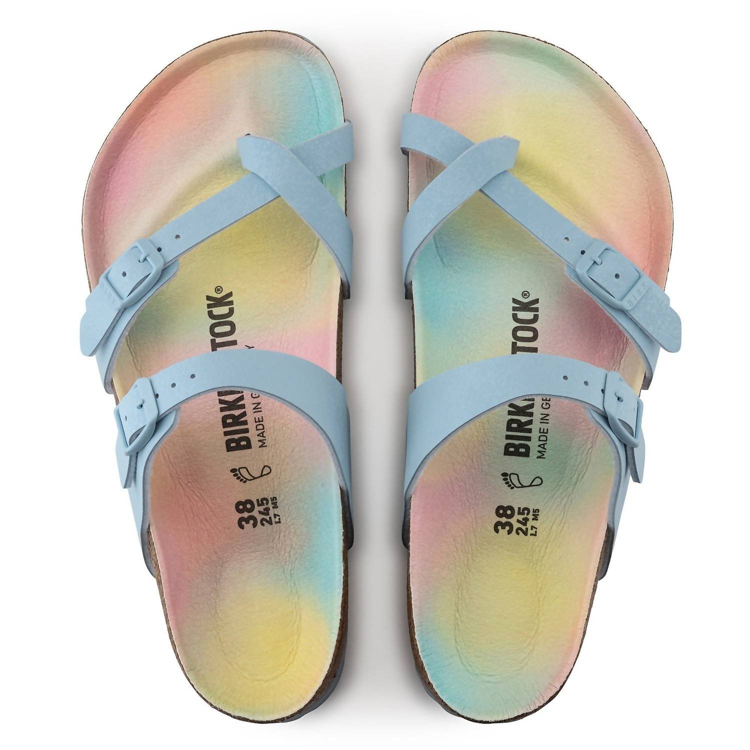 This sandal will take you from brunch to dinner and everything in between.Step into comfort with the Women’s Mayari Sandal by BIRKENSTOCK, designed in an eye-catching Sky Vegan color. This minimalist and vegan-friendly sandal features an open toe design with two adjustable straps and a modern toe loop, perfect for spring gatherings and Thanksgiving dinners. The sandal is equipped with a super lightweight and flexible EVA sole that ensures traction and comfort, while the orthopedically correct contoured footbed supports proper posture. Ideal for women seeking both style and comfort, this regular width sandal accommodates regular to wide fits.