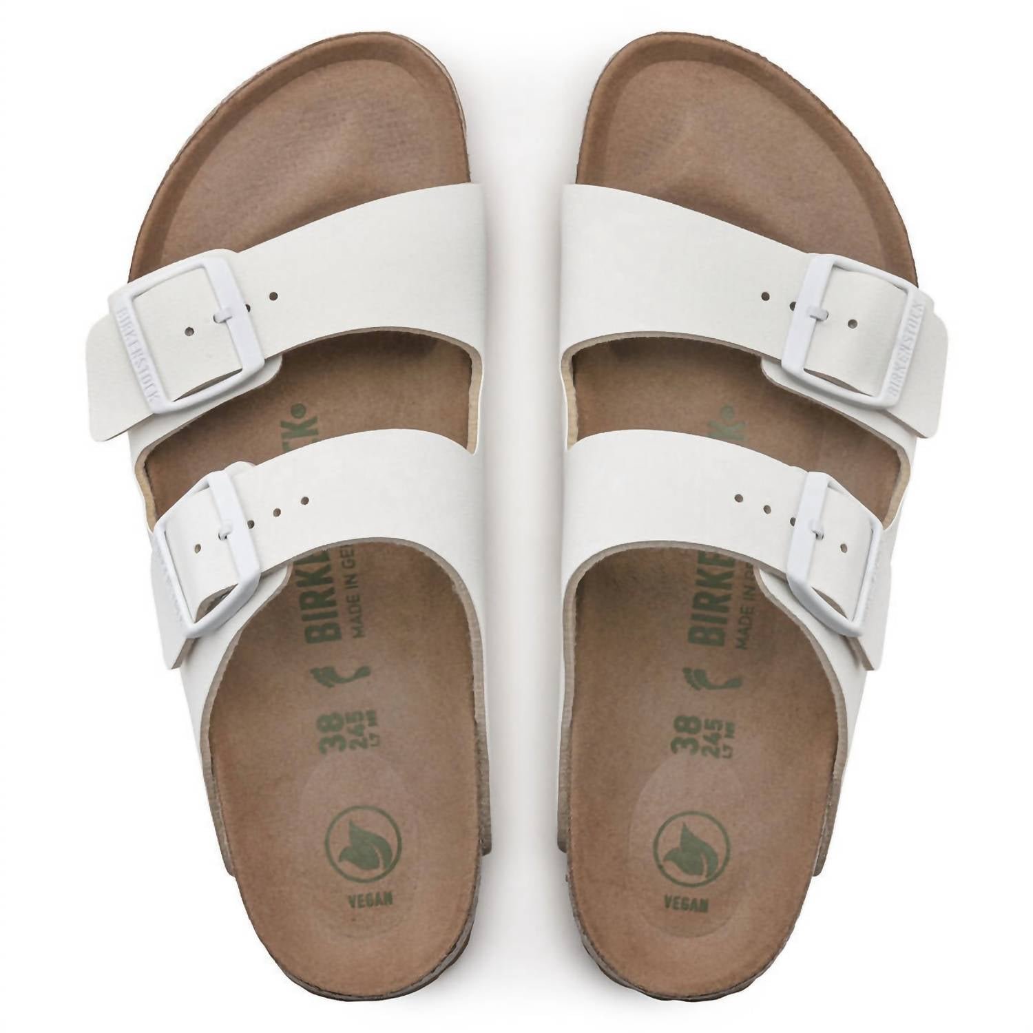 Classicly cute and all-day-wearable. We love this sandal.The Women’s Vegan Arizona Sandal by BIRKENSTOCK is a timeless classic with a modern twist, crafted entirely from animal-free materials. It features two adjustable straps made of skin-friendly Birko-Flor? nubuck, renowned for resembling real leather, and is fitted with an anatomically shaped cork-latex footbed. The sandal’s open toe design is complemented by a color-coordinated EVA sole, making it both stylish and comfortable for summer getaways. Proudly made in Germany, this sandal combines the elegance of a flat heel with boho chic appeal.