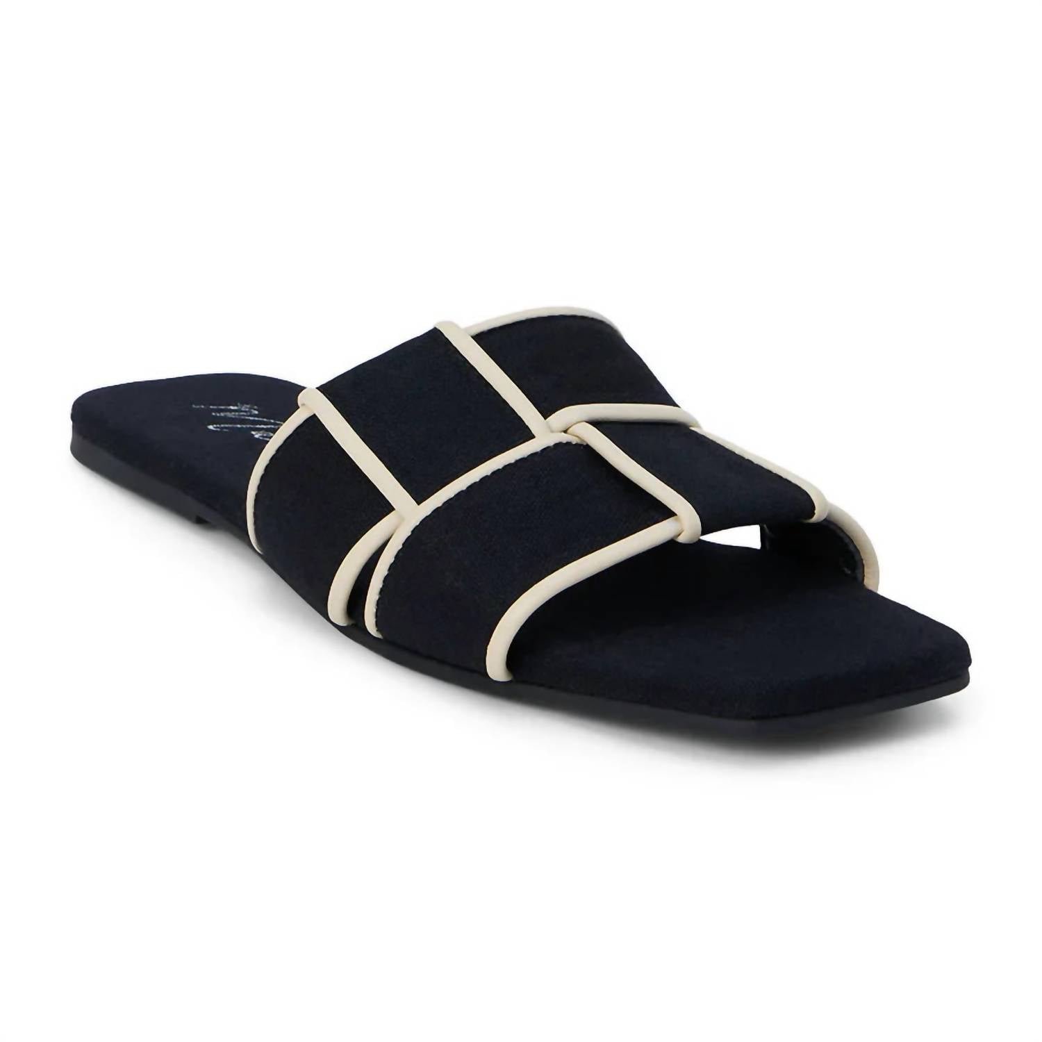 Flowy dresses, cropped pants, and even jumpsuits… this sandal works with them all!Step into understated elegance with the Women’s Biscayne Slide Sandal by Blossom Footwear, crafted for a minimalist and chic summer style. These sandals feature a flat heel and an open toe, with a woven band for added texture. The composition includes a linen and leather upper with a manmade outsole and leather lining, complete with a padded insole for comfort. Slip-on style and imported quality ensure easy wear and a sophisticated finish in classic black.