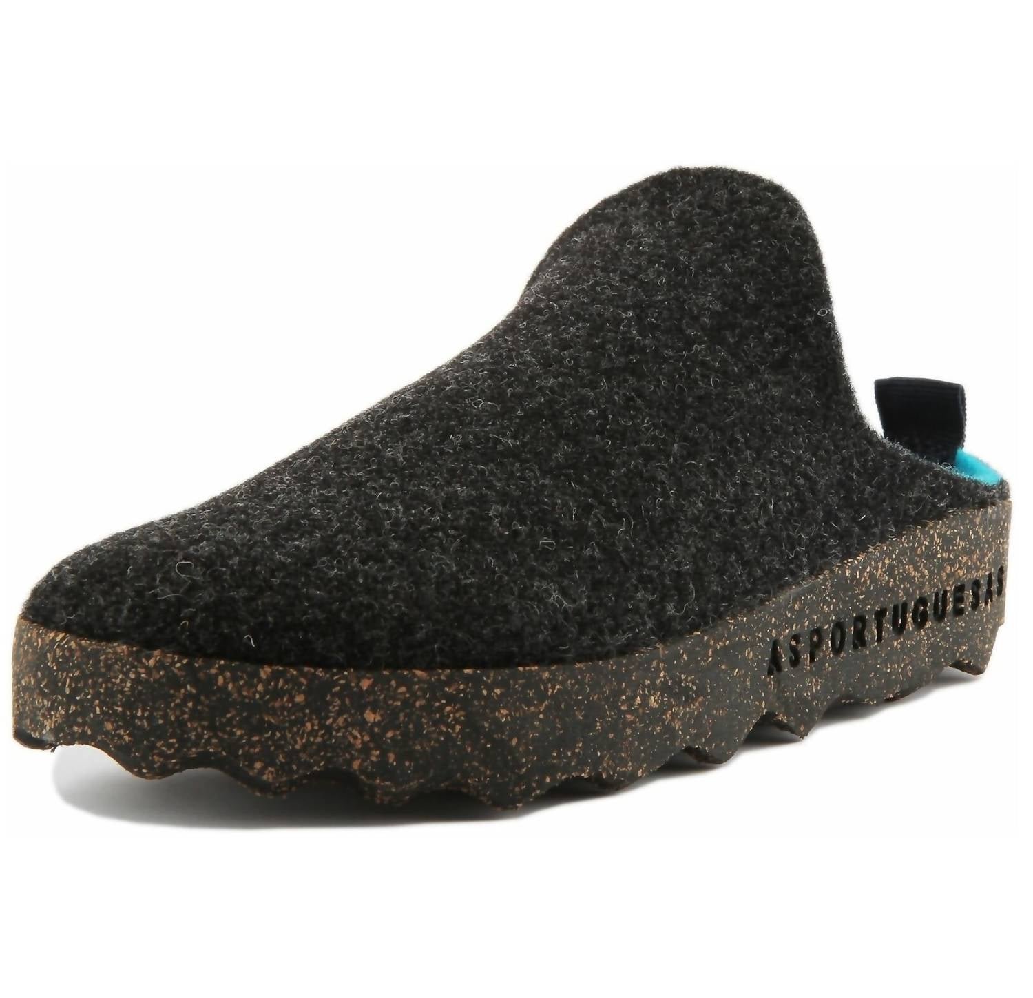 Slip-on sneaker mule featuring a soft wool upper and shock-absorbing cork sole. True to size. Made In Portugal.