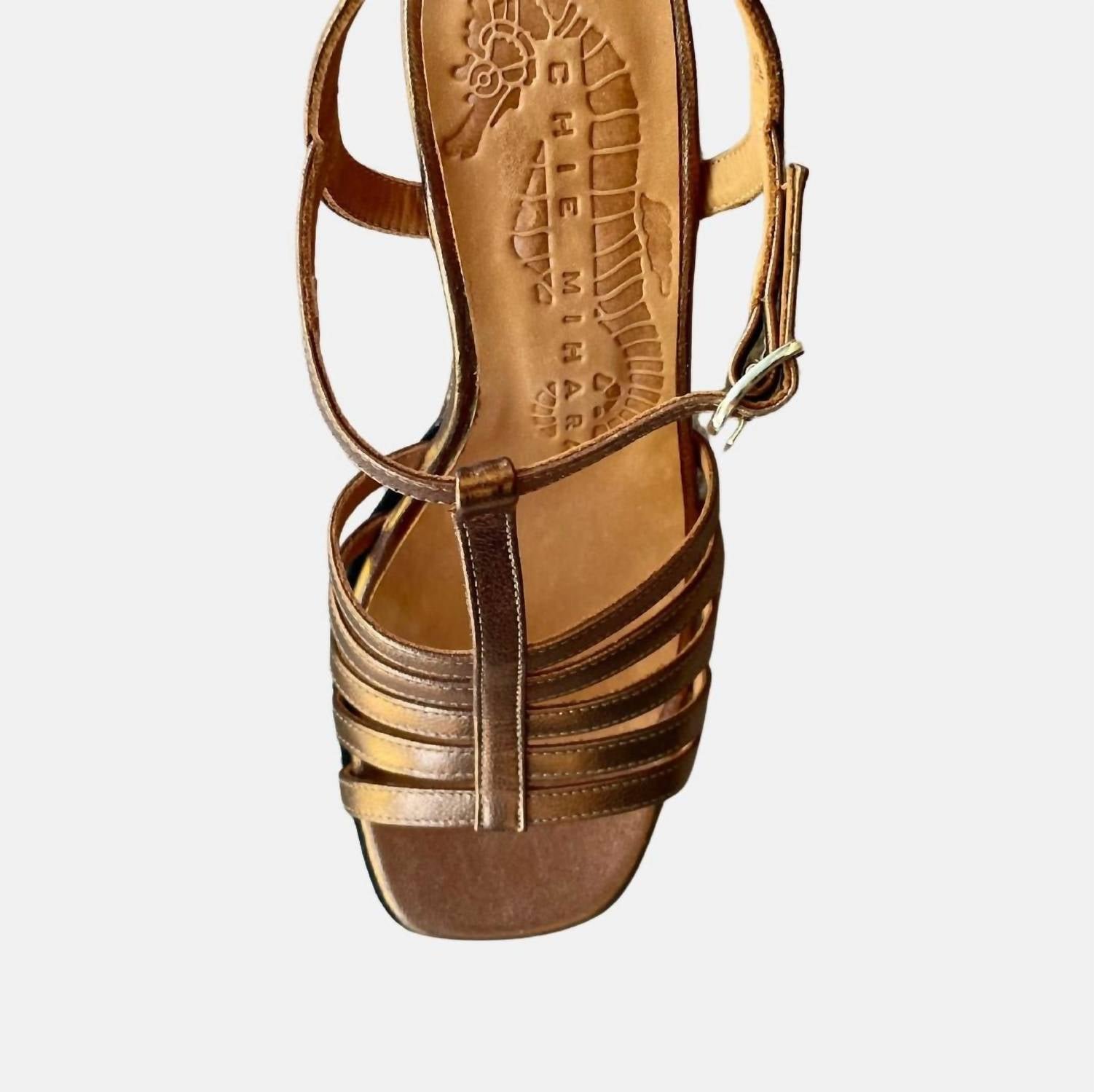 This sandal will take you from brunch to dinner and everything in between.Elevate your style with the Women’s Genial Sandal by Chie Mihara, a stunning addition in copper with a metallic finish. Crafted from leather, these sandals feature an open toe and a medium block heel, measuring 4.2 cm with a platform adjustment, ideal for summer outings and boho chic trends. The comfort-focused design includes a very soft leather lining and a secure buckle closure for all-day wear. With a rubber and half leather sole, these sandals are perfect for vacation occasions with a heel height of 1.65 inches, offering both style and elegance.