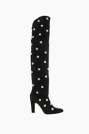 A trend that is here to stay.Introducing the Women’s Eve Over The Knee Boot by Chloe, a luxurious choice for the winter season. Crafted from 100% black suede calfskin leather, these boots are accentuated with oversized gold-tone studs for a bold yet sophisticated look. The design includes a lace-up detail at the rear and an 8.5 cm stiletto heel, ensuring both style and comfort with its almond toe shape. Please store your Chloe footwear in the protective dust bags provided and ensure they are filled with tissue to maintain shape when not in use.