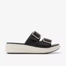 This sandal will take you from brunch to dinner and everything in between.Introducing the Women’s Drift Buckle Slide Sandal by Clarks, a chic addition to your summer wardrobe. With an open toe design, these sandals feature black synthetic uppers with adjustable buckle closures for a secure, custom fit. The comfort-driven design includes a temperature-regulating textile lining, an Extreme Comfort foam footbed with an EVA heel cup, and a lightweight EVA outsole. Ideal for warm-weather wear, these sandals boast a 1.77′ heel height and medium shoe width to ensure both style and comfort.