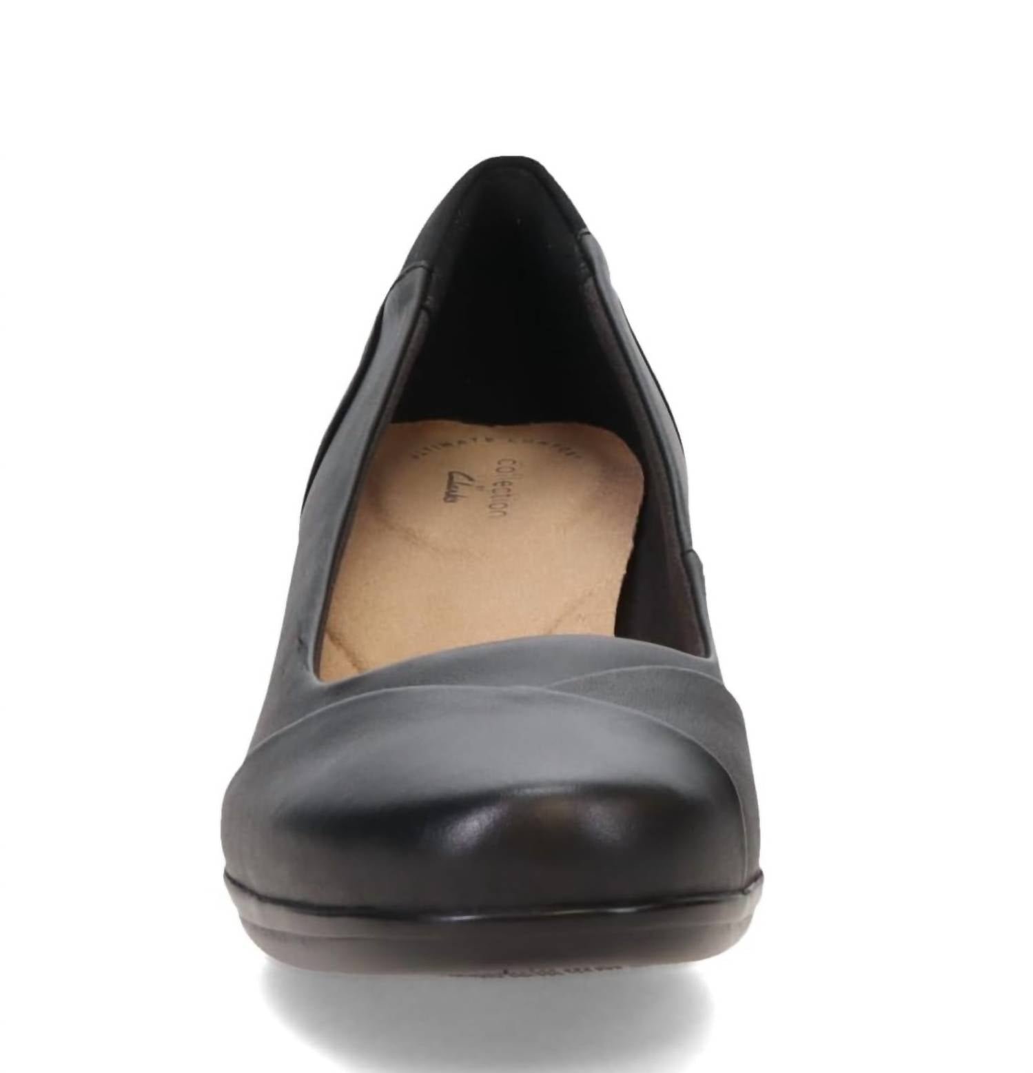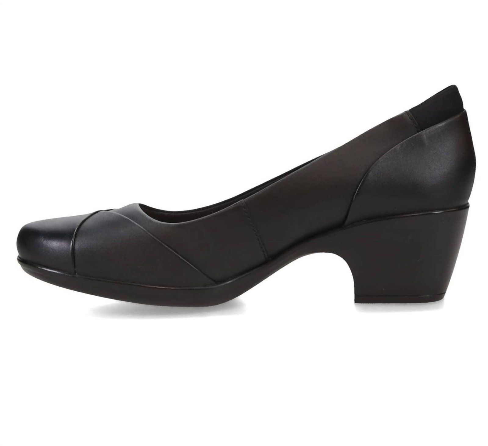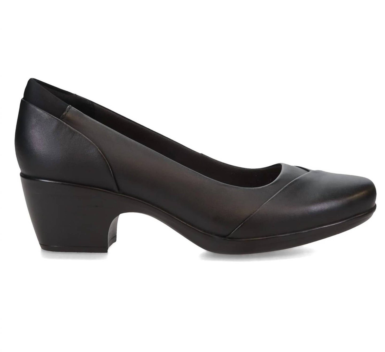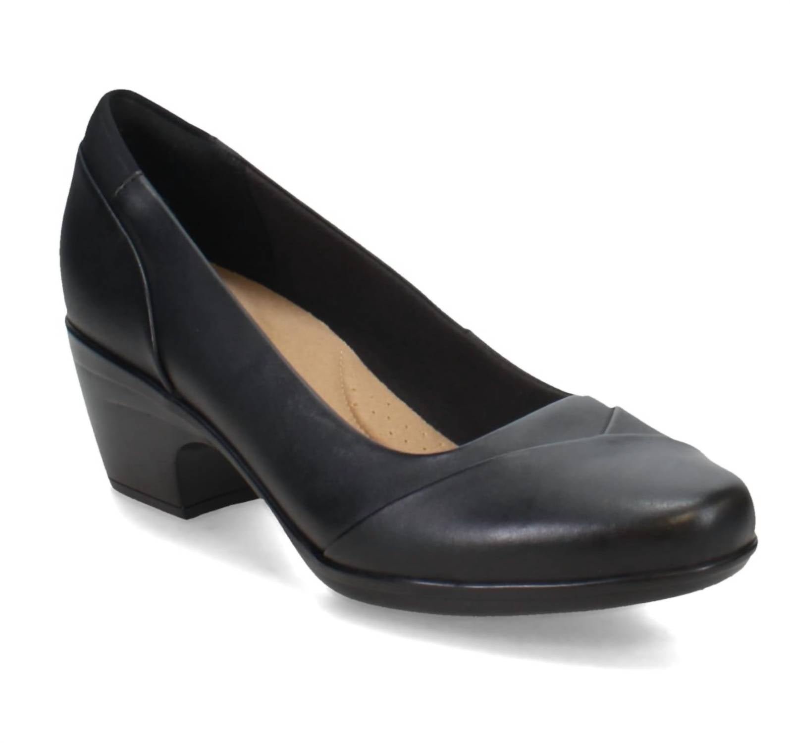 The perfect height for day to night.Step into sophistication with the Women’s Emily Alexa Leather Heel by Clarks, featuring a stylish black leather upper. The mid block heel measures approximately 2.36 inches, offering a perfect blend of elevation and comfort. Designed for narrow fit, these heels boast a round toe shape and a soft synthetic outsole for all-day ease. Perfect for any occasion, these shoes are tailored for adult women seeking both style and comfort.
