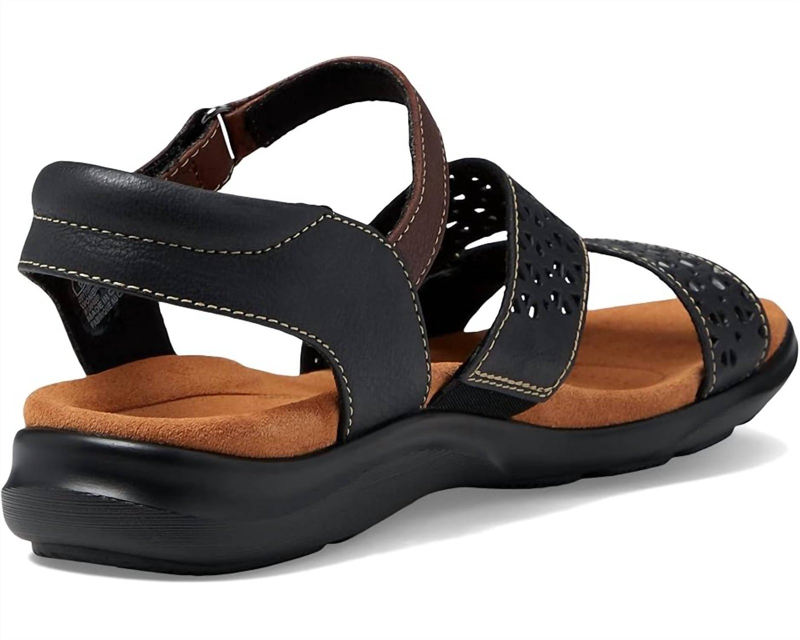 Classicly cute and all-day-wearable. We love this sandal.These versatile sandals offer lasting comfort with a soft, breathable combination of leather and textile linings. The insole is equipped with shock-absorbing Cushion Plus? technology to provide extra support with every step. Featuring a raised open-toe design and an adjustable hook-and-loop ankle closure, they combine style with convenience. Decorative cut-work on the straps adds a subtle, stylish detail, while the durable synthetic outsole ensures reliable wear for everyday use.