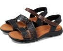 Classicly cute and all-day-wearable. We love this sandal.These versatile sandals offer lasting comfort with a soft, breathable combination of leather and textile linings. The insole is equipped with shock-absorbing Cushion Plus? technology to provide extra support with every step. Featuring a raised open-toe design and an adjustable hook-and-loop ankle closure, they combine style with convenience. Decorative cut-work on the straps adds a subtle, stylish detail, while the durable synthetic outsole ensures reliable wear for everyday use.