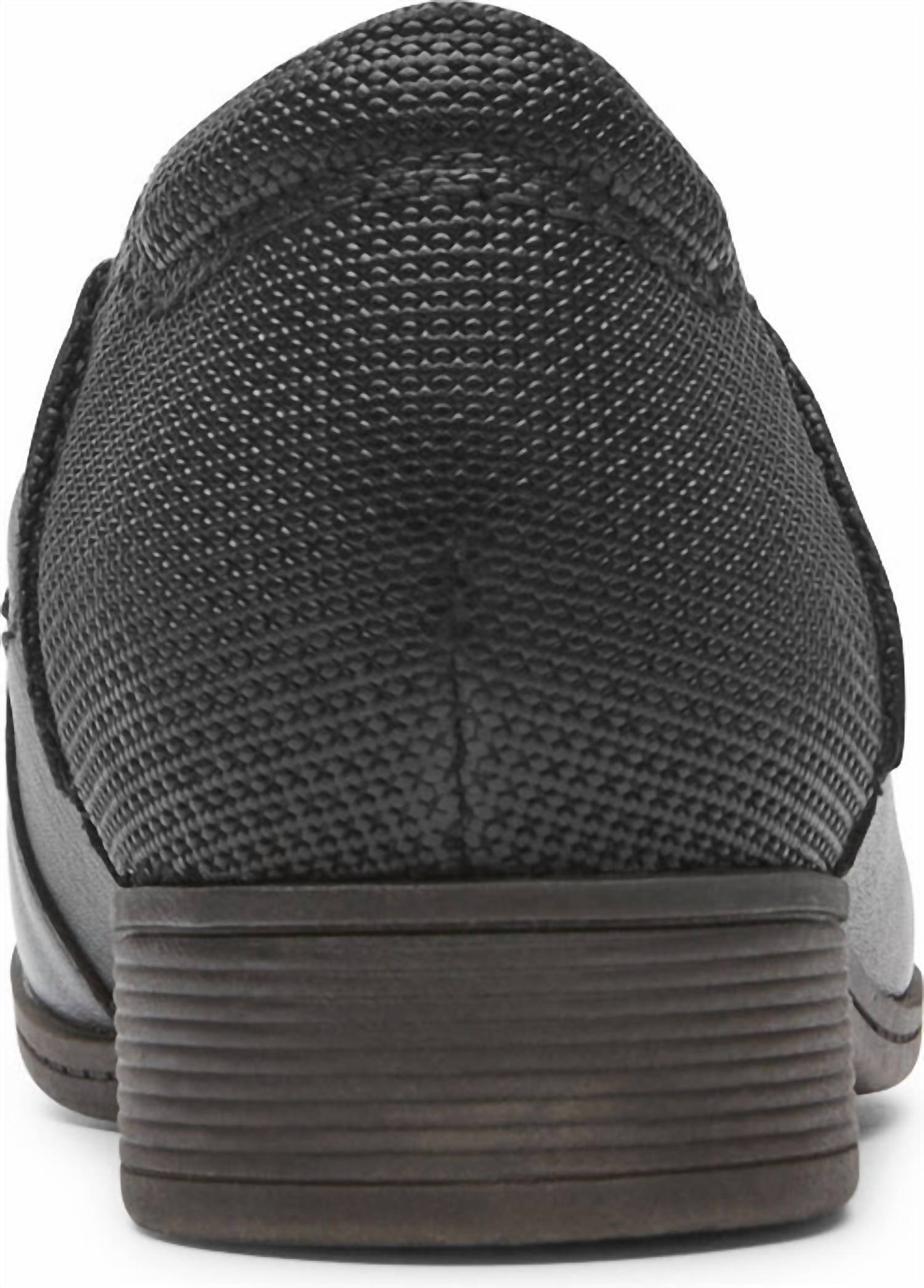 Loafers so versatile you can wear them with just about anything.Perfect blend of style and sustainability in black leather. Medium-width loafers feature a 1-inch block heel and a comfortable, removable, eco-friendly EVA footbed with a soft leather and textile cover. Enhanced arch support and a TPR outsole ensure superior traction and comfort. Thoughtfully designed shoes that prioritize both fashion and function.