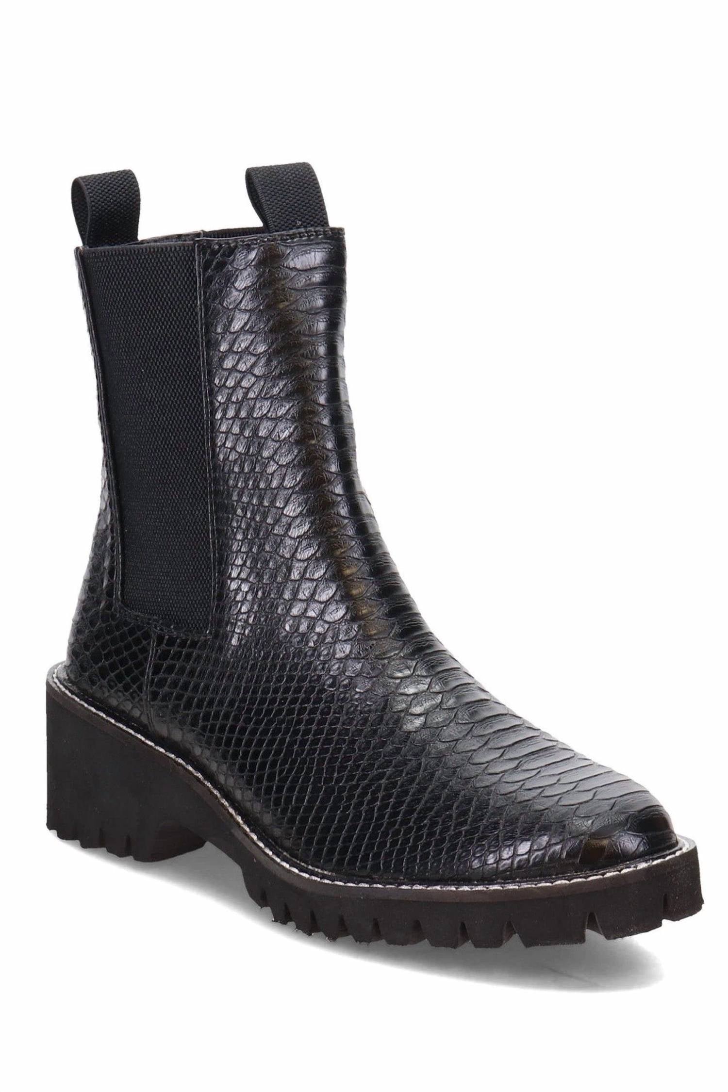 Say hello to the perfect, most versatile boot. The ankle height makes this style easily transition from day to night. Wear them with your favorite skinny jeans and tee for a more laid back look, or pair them with your favorite mini dress and jacket for a night out on the town.Step up your style with the Women’s Chase Boot by Coconuts by Matisse, a standout piece featuring chunky Chelsea boot design in trendy snake embossed black vegan leather. With a 6.5-inch shaft height, 11-inch boot opening, and 2-inch chunky heel, this pull-on boot combines comfort and vintage flair. The shoe is crafted with a synthetic leather upper and textile lining, completing with a padded insole for all-day comfort. Perfect for a fall concert, these boots cater to those seeking both fashion and function.