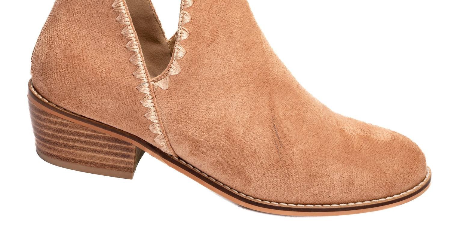 Step out in confidence and showcase your impeccable taste with these fashionable and versatile boots. Their classic style will have you reaching for these boots season after season.Step into style with the Women’s Spice It Up Booties by Corkys Footwear, crafted from camel faux leather for a chic finish. These heeled boots feature an almond toe design and a comfortable 2′ block heel, perfect for your next holiday party. With a medium width and a practical zipper closure at the back, they’re designed for a perfect fit, especially for those who need to size up. Experience the ease of incorporating these fall-ready booties into your wardrobe.
