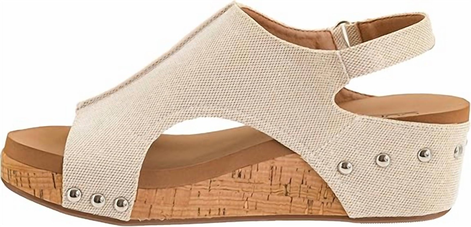 Classicly cute and all-day-wearable. We love this sandal.Embrace a touch of glamour with the Women’s Volta Shimmer Sandals by Corkys Footwear, perfectly crafted for those who love to stand out. Made from premium leather with striking studded accents, these gold sandals offer a wedge heel style and an open toe shape for both elegance and comfort. Designed with a convenient velcro strap closure and a soft cushion bed, they ensure a snug fit with a heel height of 2 inches. Ideal for spring and 90s fashion-inspired trends, these sandals are a perfect choice for a dinner party or as part of your St. Patrick’s Day ensemble.