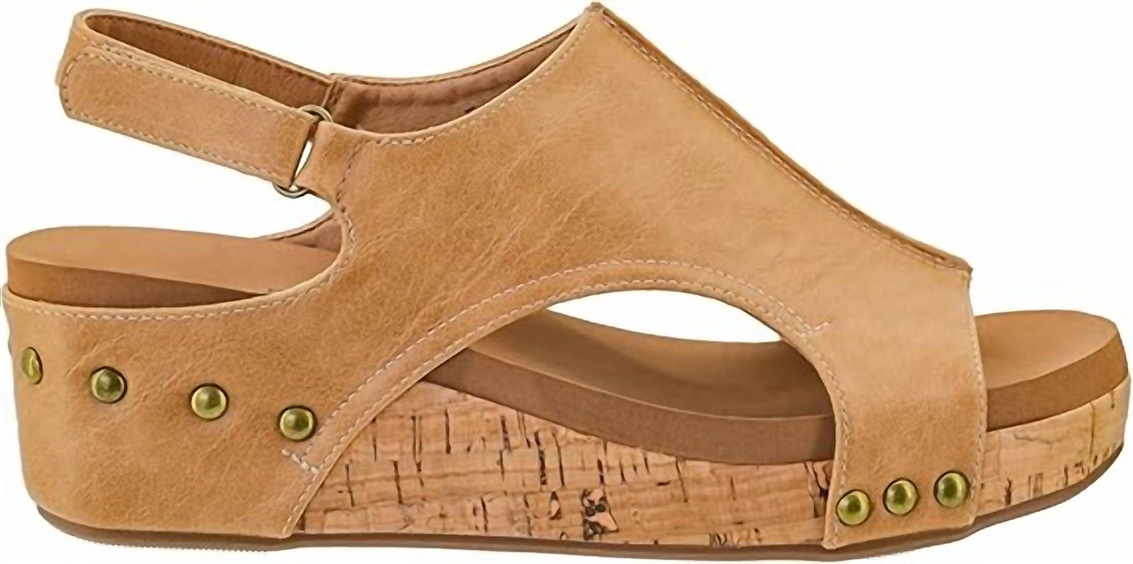 Flowy dresses, cropped pants, and even jumpsuits… this sandal works with them all!Meet the Women’s Volta Smooth Sandals by Corkys Footwear, designed for style and comfort in a stunning caramel hue. These leather sandals flaunt studded accents and feature an open toe with a mid-height wedge heel, perfect for your spring gatherings or Easter celebrations. Closure: Velcro strap for easy wear. Step out in confidence with these true-to-size sandals, boasting a soft cushion bed for all-day comfort.