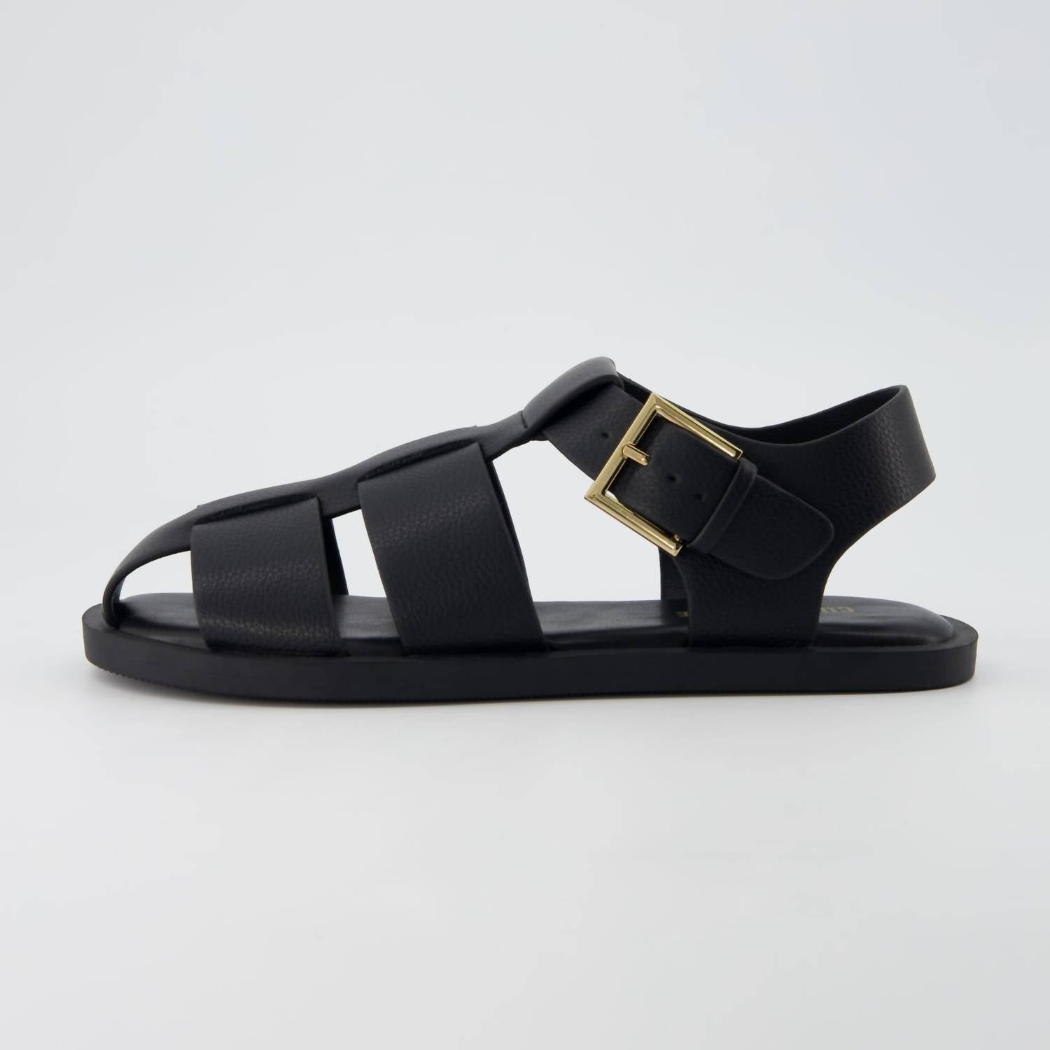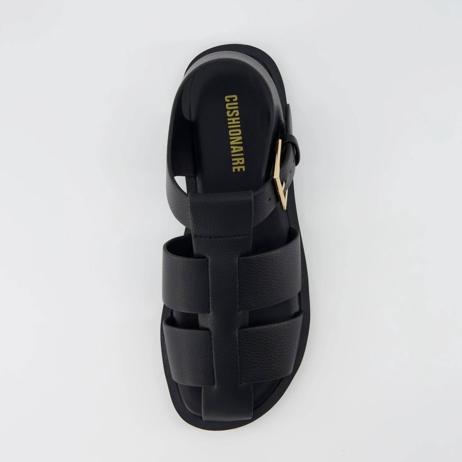 This sandal will take you from brunch to dinner and everything in between.Introducing the Women’s Plaza Fisherman Sandal by Cushionaire, a perfect blend of timeless design and modern comfort. Crafted from soft and durable vegan leather, these black smooth sandals feature wide straps for stability and an adjustable buckle for a personalized fit. Enjoy the superior comfort of a cushioned memory foam footbed, ideal for all-day wear. Lightweight yet durable, they boast a flexible outsole for confident stepping during any warm-weather adventure or casual outing.