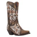 Step out in confidence and showcase your impeccable taste with these fashionable and versatile boots. Their classic style will have you reaching for these boots season after season.Distressed brown leather boot. Geometric inlay detail on shaft and foot. Medium cowboy 1′ heel. Snip toe. Easy pull on and off tabs. Ultimate flex insole. Leather outsole.