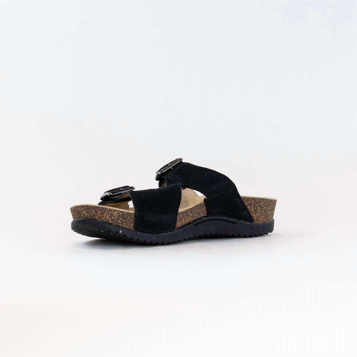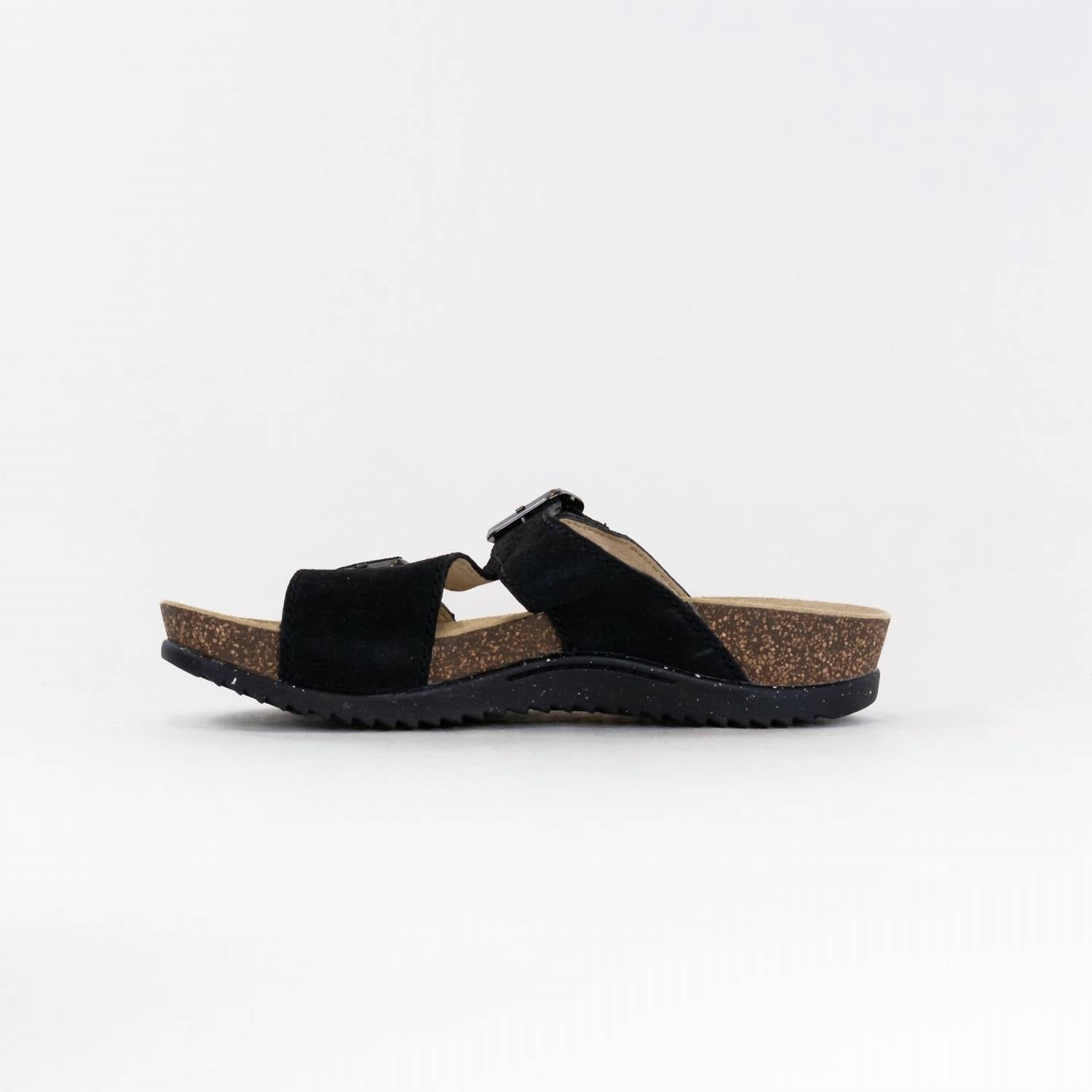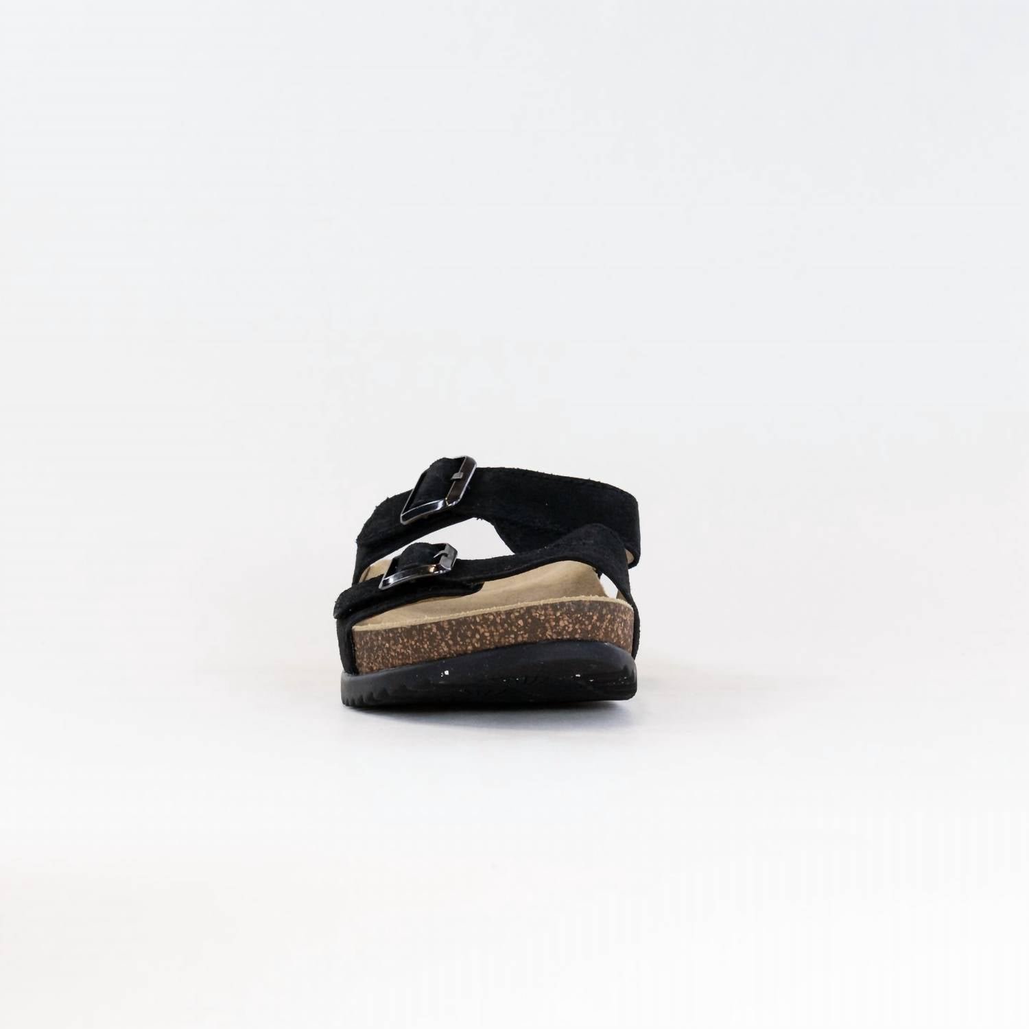 Flowy dresses, cropped pants, and even jumpsuits… this sandal works with them all!The Women’s Dayna Sandals by Dansko offer a casual yet classic look, perfect for any occasion. Crafted from chrome-free suede with chrome-free leather linings, these sandals combine style with comfort. The open toe design features a double strap slide with hook and loop adjustability for a custom fit, and the dual density cork/EVA midsole ensures lightweight cushioning. The Vibram ECOSTEP EVO rubber outsole, made with a minimum of 30% recycled content, provides durable traction, and the sandals have received the APMA Seal of Acceptance for comfort. These sandals come in black, with a medium width and flat heel.