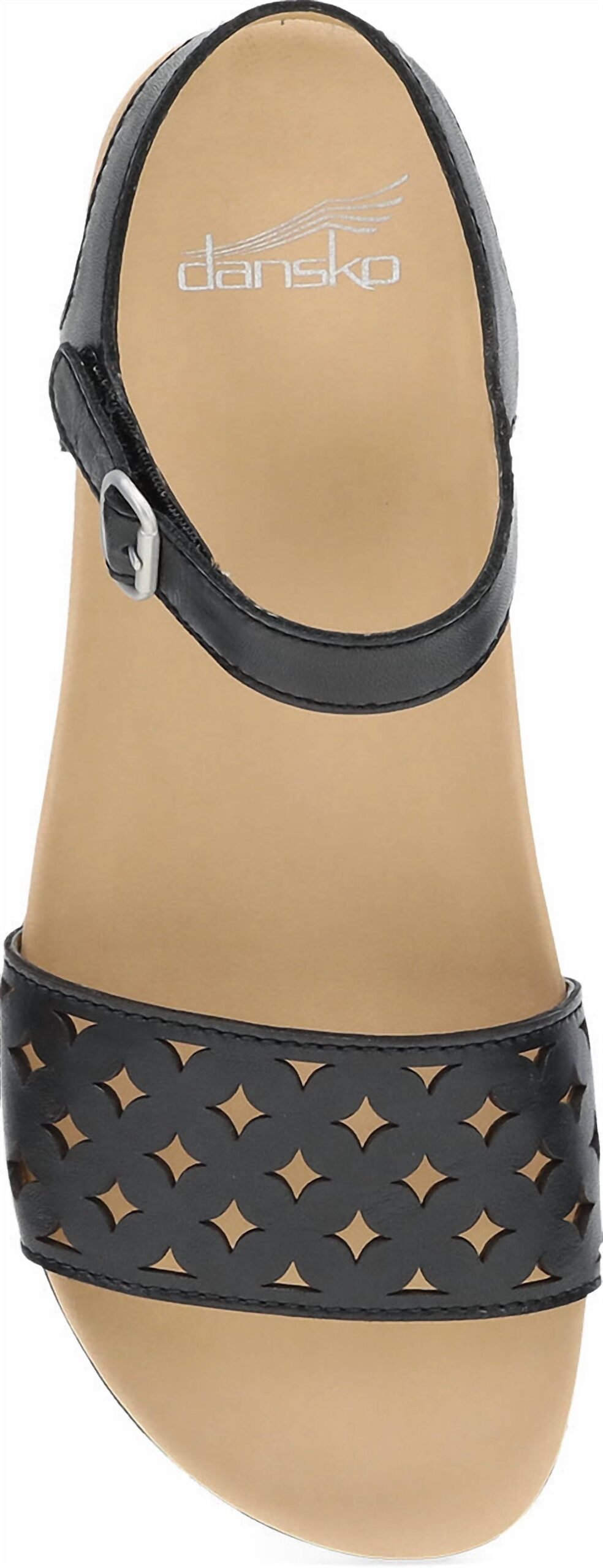 Classicly cute and all-day-wearable. We love this sandal.Experience style and comfort with the Women’s Jodie Flat Sandal by Dansko in classic black. This elegant flat sandal features a high-quality leather upper and chrome-free leather lining. The nubuck socklining ensures a soft underfoot feel, while the contoured dual-density EVA footbed provides full-foot support. With lightweight rubber outsoles and a convenient hook & loop closure, these sandals offer long-lasting wear and a heel height of 1 inch for minimalist summer style. Ideal for occasions like church, these open-toe beauties are a perfect Mother’s Day gift.