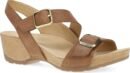 Don’t be deceived, these heels are comfy as can be.Elevate your style with the Women’s Trinity Sandals by Dansko, part of the Toulouse Collection, perfect for any occasion. These tan peep-toe heels feature a burnished leather upper with a contoured rigid PU midsole for comfort and a cushioned energy-return PU footbed. With a heel height of 2.25 inches and a platform height of 1 inch, these sandals provide both height and stability. The hook and loop adjustability and rubber outsole ensure long-lasting comfort and wear.