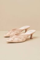 The perfect height for day to night.Step into quiet luxury with the Women’s Camilo Kitten Heel by Dolce Vita, a refined choice for your summer vacation wardrobe. These stylish light natural raffia heels feature a chic pointed toe accented with delicate floral appliques and pearly centers, finished off with a dainty bow. Crafted with genuine leather accents and balanced with man-made materials, the mules boast a trendy 2′ spool heel for a hint of height. Perfectly imported and designed for effortless elegance, they slip on with ease for any warm-weather occasion.