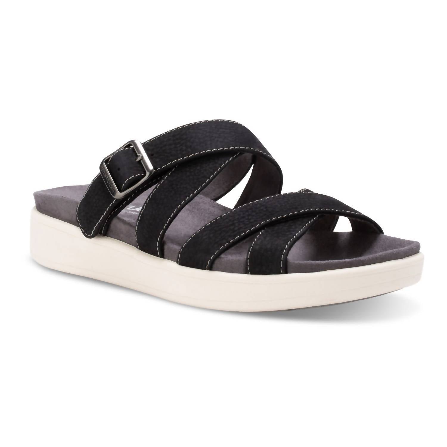Step into style and comfort with the Women’s Machias Buckle Slide from Eastland. Featuring adjustable straps for a custom fit, these sandals boast a leather or suede upper with micro-suede fabric lining for ultimate barefoot comfort. The contoured cushioned footbed and light rubber outsole provide all-day support and slip resistance, while the flat heel stands at 1 1/4 inches for a subtle lift. Ideal for game day or casual outings, these open-toe beauties ensure durability and timeless style.