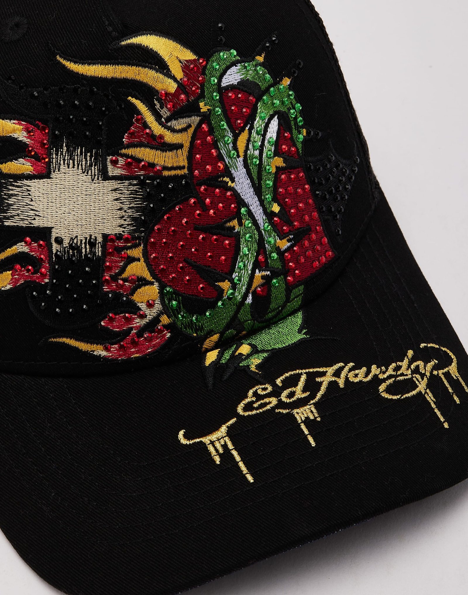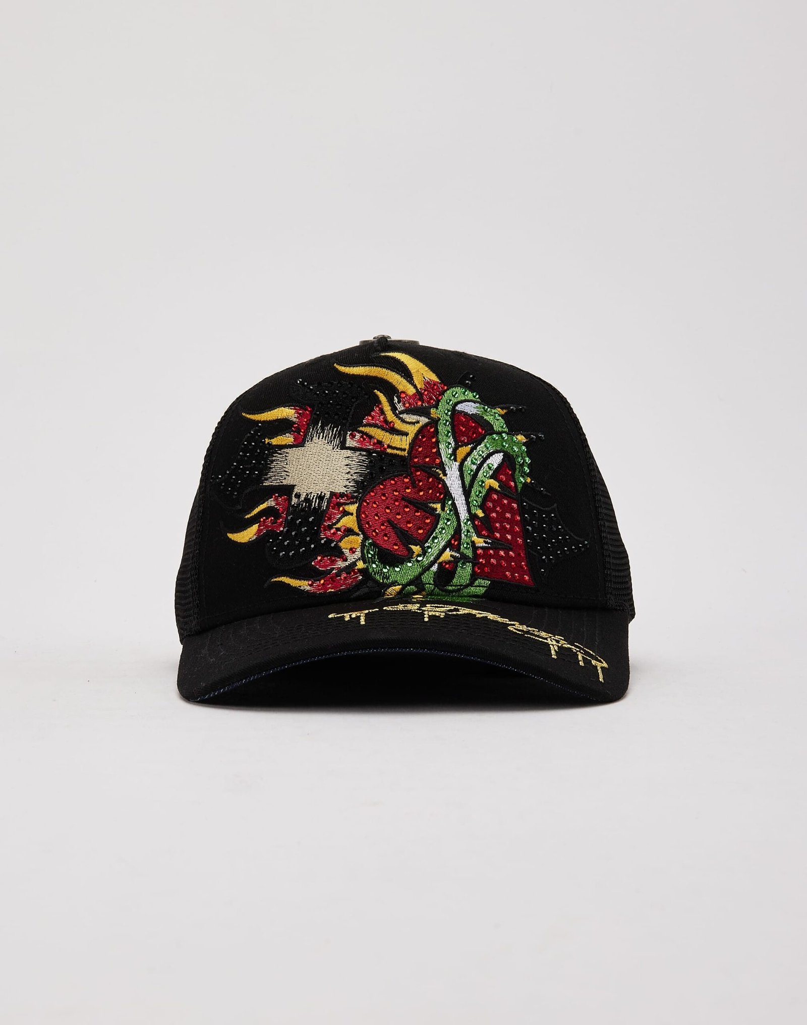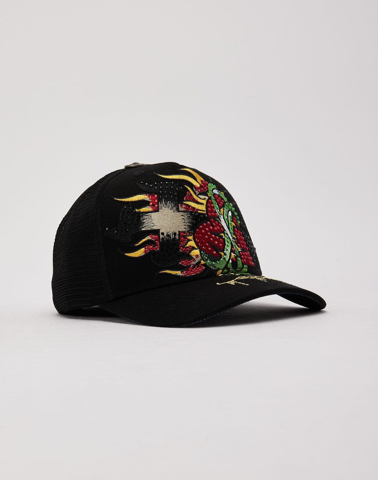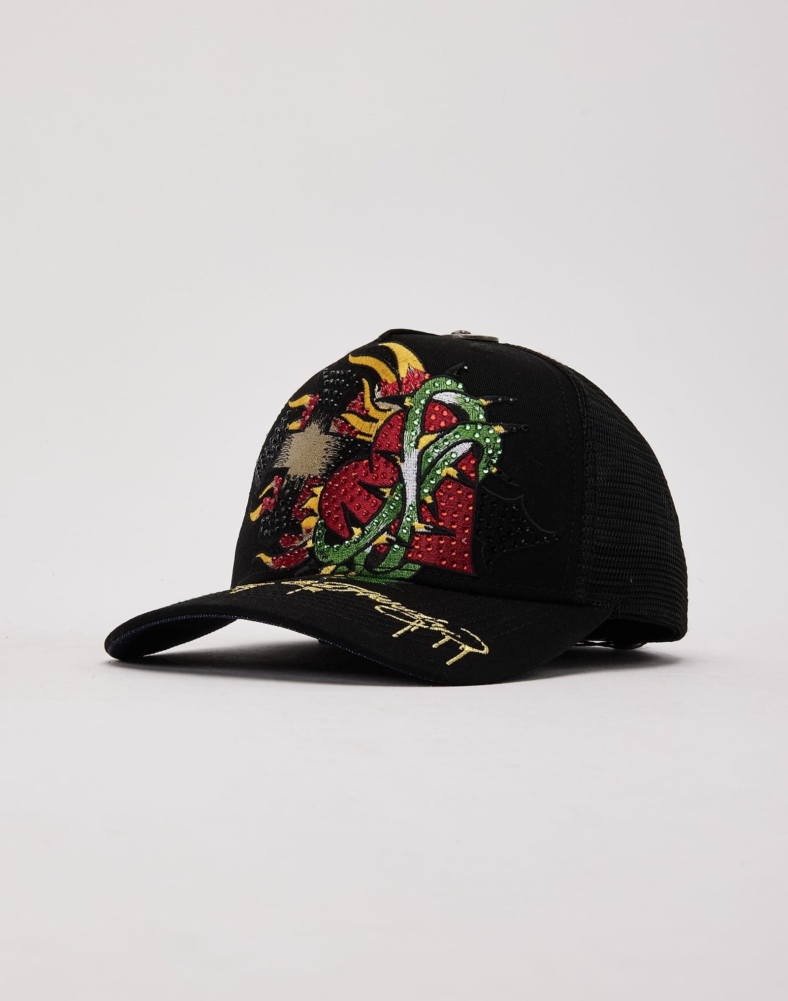 Channel your inner Y2K with the Mary Cross Trucker Hat from Ed Hardy. This trucker features a bold rhinestone-studded graphic on the crown for that in-your-face feel. A breathable mesh back helps you stay cool in the heat.