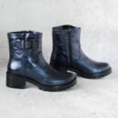 Say hello to the perfect, most versatile boot. The ankle height makes this style easily transition from day to night. Wear them with your favorite skinny jeans and tee for a more laid back look, or pair them with your favorite mini dress and jacket for a night out on the town.Meet the Women’s Leah Work Boot by Eric Michael, a blend of style and durability in stunning Blue Metallic. Fashioned from quality leather, these boots feature a practical inside zipper and an eye-catching buckle detail, perfect for your workwear ensemble. The lug sole ensures ample traction, while the 2′ chunky heel delivers both comfort and flair. With its emphasis on design and utility, this boot is an ideal choice for your fall vacation wardrobe.