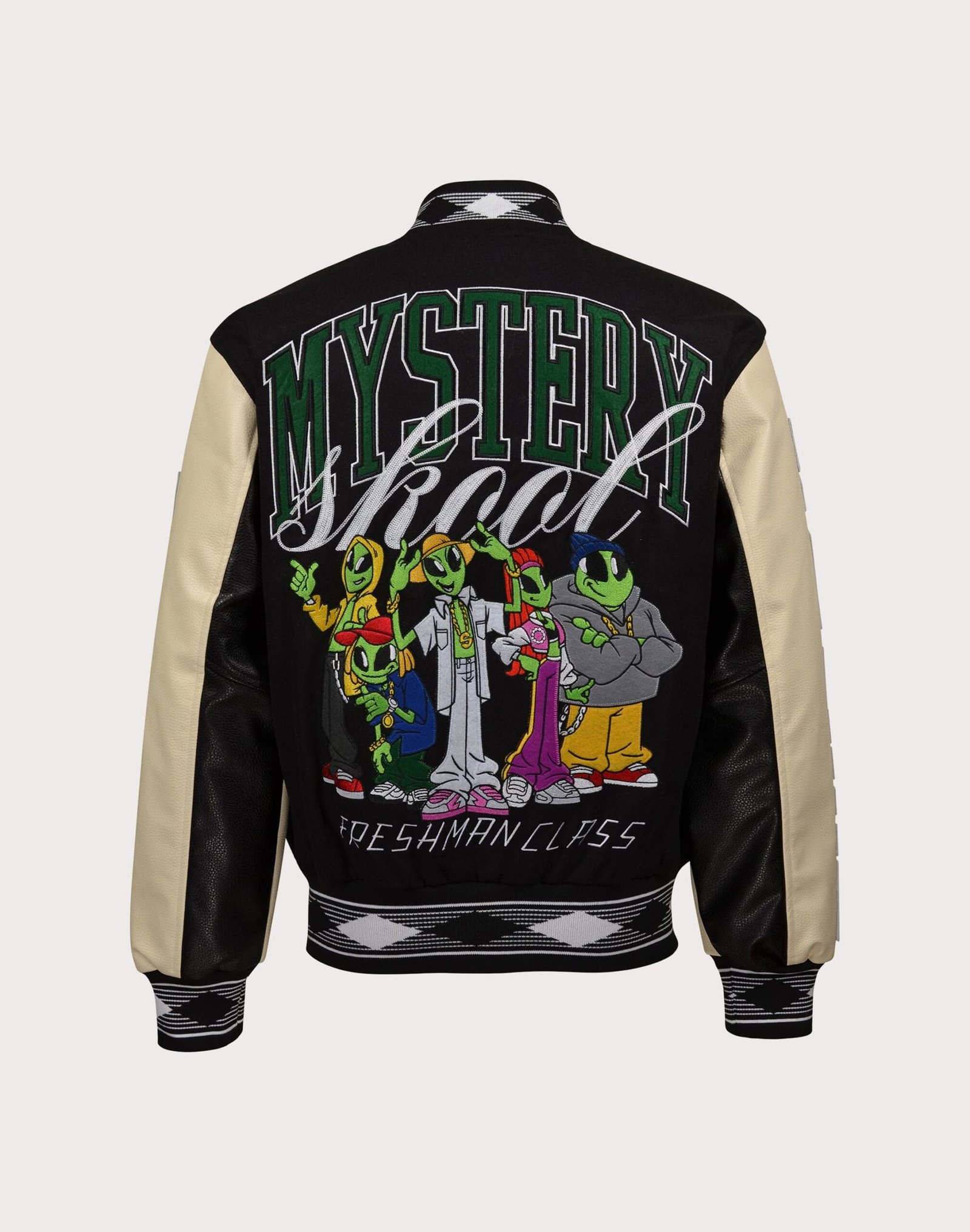 Get out there and let the city lights give you life in First Row Mystery School Varsity Men’s Black Jacket, a smooth jacket with a slimming silhouette and keeps you in charge and en vouge with vibrant contrasting colors and premium material construction.
