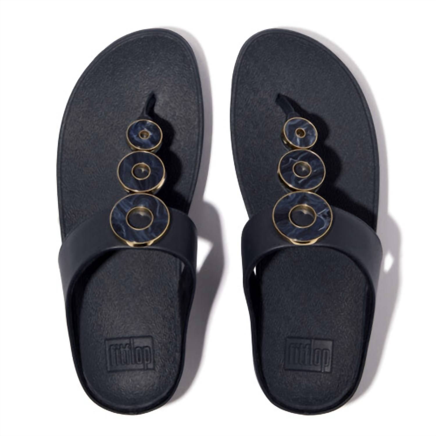 Flowy dresses, cropped pants, and even jumpsuits… this sandal works with them all!Step into effortless elegance with the Fino Resin Toe Post Sandal by FitFlop, crafted in a timeless Midnight Navy. These women’s sandals feature a faux leather upper paired with a microfibre-lined fabric interior, offering a sleek and comfortable fit. Built with FitFlop’s renowned Microwobbleboard? midsoles, they provide all-day cushioning and support, while the slip-on design ensures ease of wear. Complete with a slip-resistant rubber outsole, these sandals deliver both style and functionality for any occasion.
