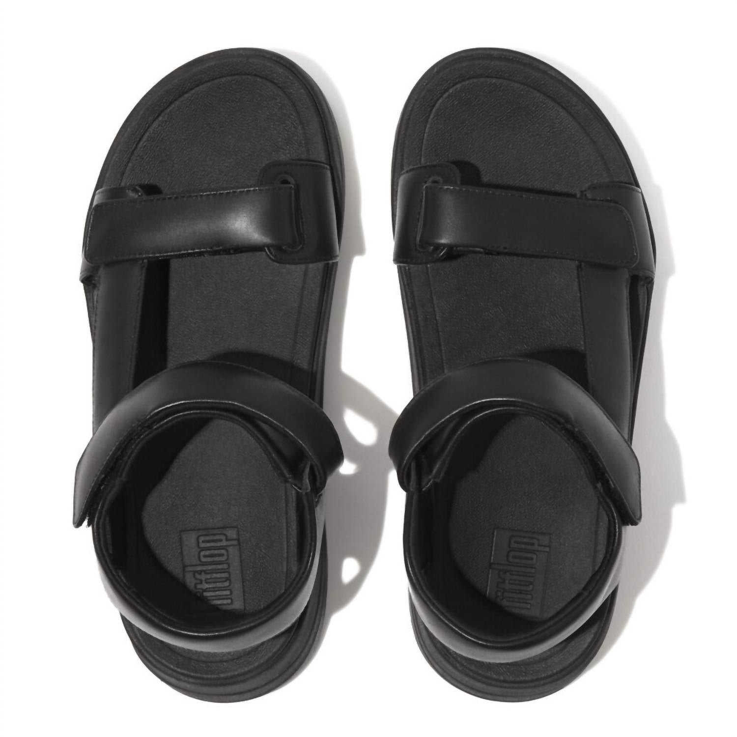 Flowy dresses, cropped pants, and even jumpsuits… this sandal works with them all!Introducing the Surff Adjustable Leather Sandal by FitFlop, effortlessly blending sporty style with modern sophistication. Crafted from soft leather with a Lycra lining, these sandals feature a utilitarian chunky-sole silhouette and multi-adjustable hook and loop touch straps for a custom fit. Designed with an open toe, they ride on FitFlop’s legendary Microwobbleboard? Wide technology and slip-resistant rubber outsole, enhancing grip for varied terrains and daily adventures. Step into these black sandals and experience all-day comfort and ergonomic brilliance, perfect for both city strolls and light country trails.