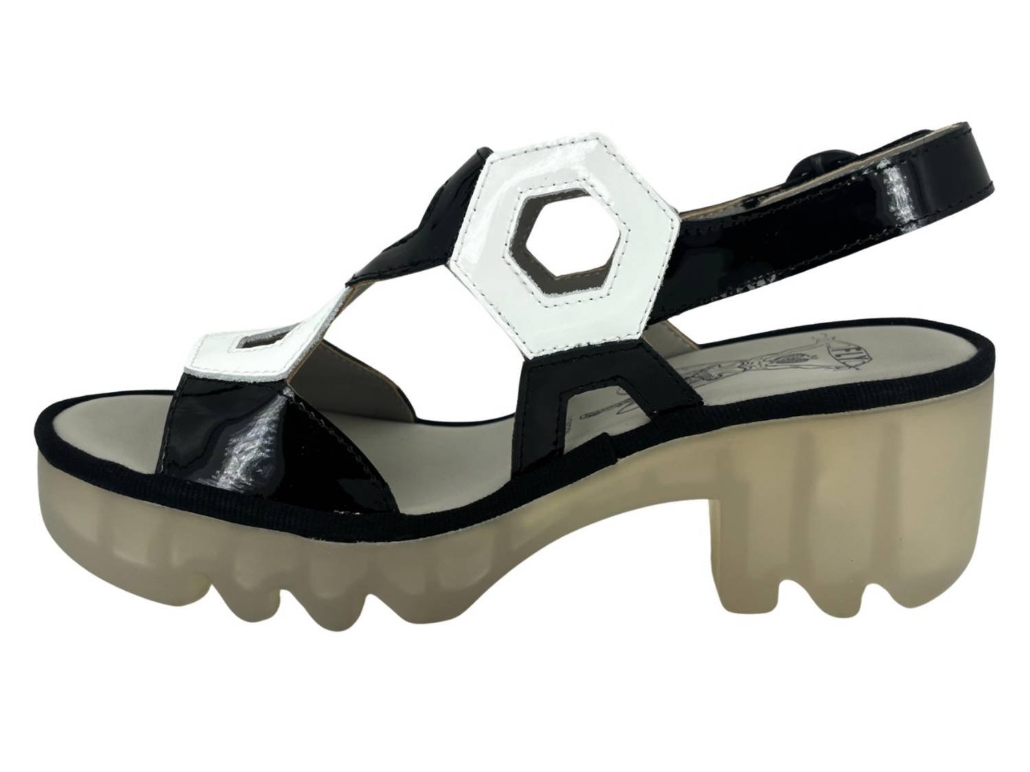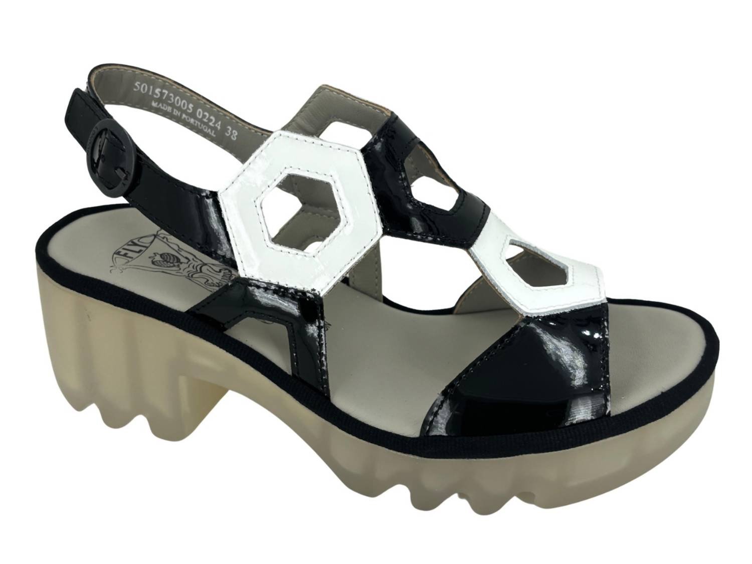 Pair these beauties with your favorite skinny jeans or dress for a night out on the town.The Tewa platform heel sandals combine casual elegance with all-day comfort for effortless style. Featuring a two-toned patent leather design, they’re crafted with a Velcro slingback strap and functional buckle for a secure, customizable fit. A leather-lined interior and cushioned footbed provide breathable comfort and support, while the flexible rubber outsole ensures durability and traction. With a 2.5′ heel and 1′ platform, these sandals offer a stylish lift with balanced stability—perfect for versatile wear.