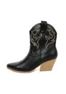Say hello to the perfect, most versatile boot. The ankle height makes this style easily transition from day to night. Wear them with your favorite skinny jeans and tee for a more laid back look, or pair them with your favorite mini dress and jacket for a night out on the town.Step into style with the Women’s Western Cowgirl Ankle Booties by Fortune Dynamic, perfect for making a bold statement. Crafted from durable leather, these black high-top booties feature a classic western stitched design and a fashionable pointed toe. The short booties come with a comfortable heel height of 2.5 inches and are designed to fit true to size. Embrace the iconic cowgirl vibe with these versatile ankle boots suitable for any occasion.