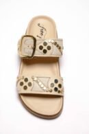 This sandal will take you from brunch to dinner and everything in between.Step into summer style with the Women’s Revelry Studded Sandal by Free People, a Plaster-colored essential for any wardrobe. These sandals feature a slip-on, backless design with adjustable buckles and double leather straps, adorned with eye-catching suede and stud details. The sandals are crafted from leather and rubber for durability and comfort, supported by a molded footbed and tread outsole. These sandals are a versatile addition to your vacation outfits, effortlessly complementing any ensemble.