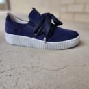 Cute, functional, and comfortable. These sneakers check all the boxes.The Gabor Bow Sneaker features a distinctive design and offers exceptional comfort with a lightweight sole and elastic laces. It is available in U.S. sizing, with packaging indicating UK, FR, US, and JPN sizes. The shoe is made from textile, suede, or leather, has a removable leather insole, a 15mm heel height, and a leather lining. It is designed in Germany and manufactured in Portugal.