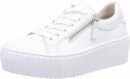 Cute, functional, and comfortable. These sneakers check all the boxes.Introducing the Women’s Gabor Sneaker in crisp white leather, expertly crafted for both style and functionality. This sneaker features a convenient combination of laces and zipper closure, and an approximately 1′ platform heel for a modern touch. Its round toe design enhances comfort, while the removable footbed allows for personalized orthotic use. A perfect choice for those seeking both fashion and custom fit in their everyday footwear.