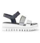 Flowy dresses, cropped pants, and even jumpsuits… this sandal works with them all!Supple nappa leather. Silver metallic accents. Coarse sole. Wide straps. Velcro closure. Heel height: Heel 15 mm.