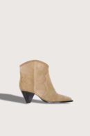 Say hello to the perfect, most versatile boot. The ankle height makes this style easily transition from day to night. Wear them with your favorite skinny jeans and tee for a more laid back look, or pair them with your favorite mini dress and jacket for a night out on the town.Elevate your footwear collection with the Women’s Darizo Suede Ankle Boots by ISABEL MARANT, designed in an elegant taupe hue. These boots are made from 100% calfskin leather, featuring a chic cone heel with a height of 5.5 cm / 2.2 in, perfect for adding a touch of sophistication. The pointed toe shape and suede material make them a stylish choice for both spring occasions and special holiday events.
