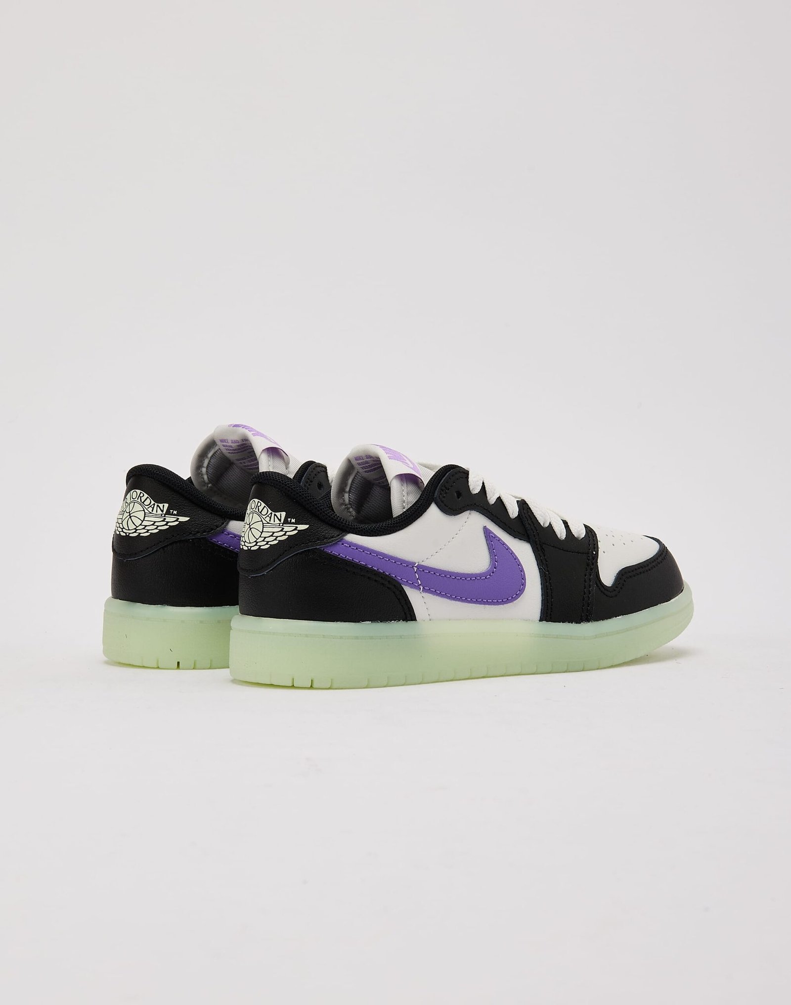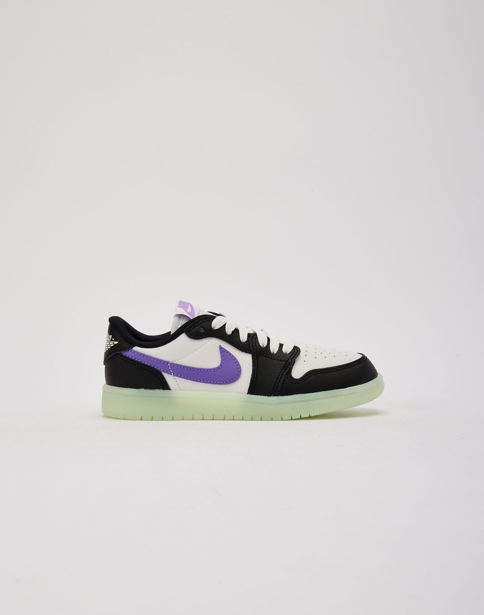 This Air Jordan 1 Retro Low OG stands out with vivid ‘Black Raspberry’ accents against a black and ‘Summit White’ leather upper. Paired with a glow-in-the-dark ‘Volt Tint’ outsole, these kicks are a must-have in your kids’ rotation.