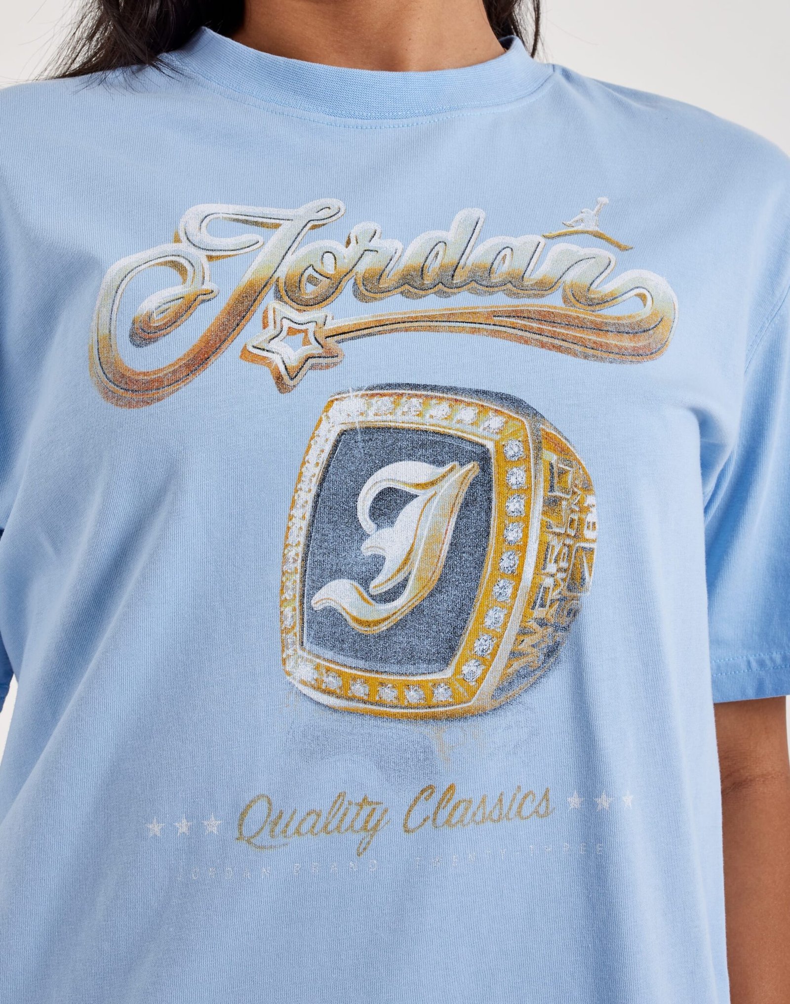 Tap into the legacy of Jordan Brand with this graphic tee. Equipped with signature Jordan graphics on the front, this soft cotton T-shirt is a staple that’ll help you stand out.