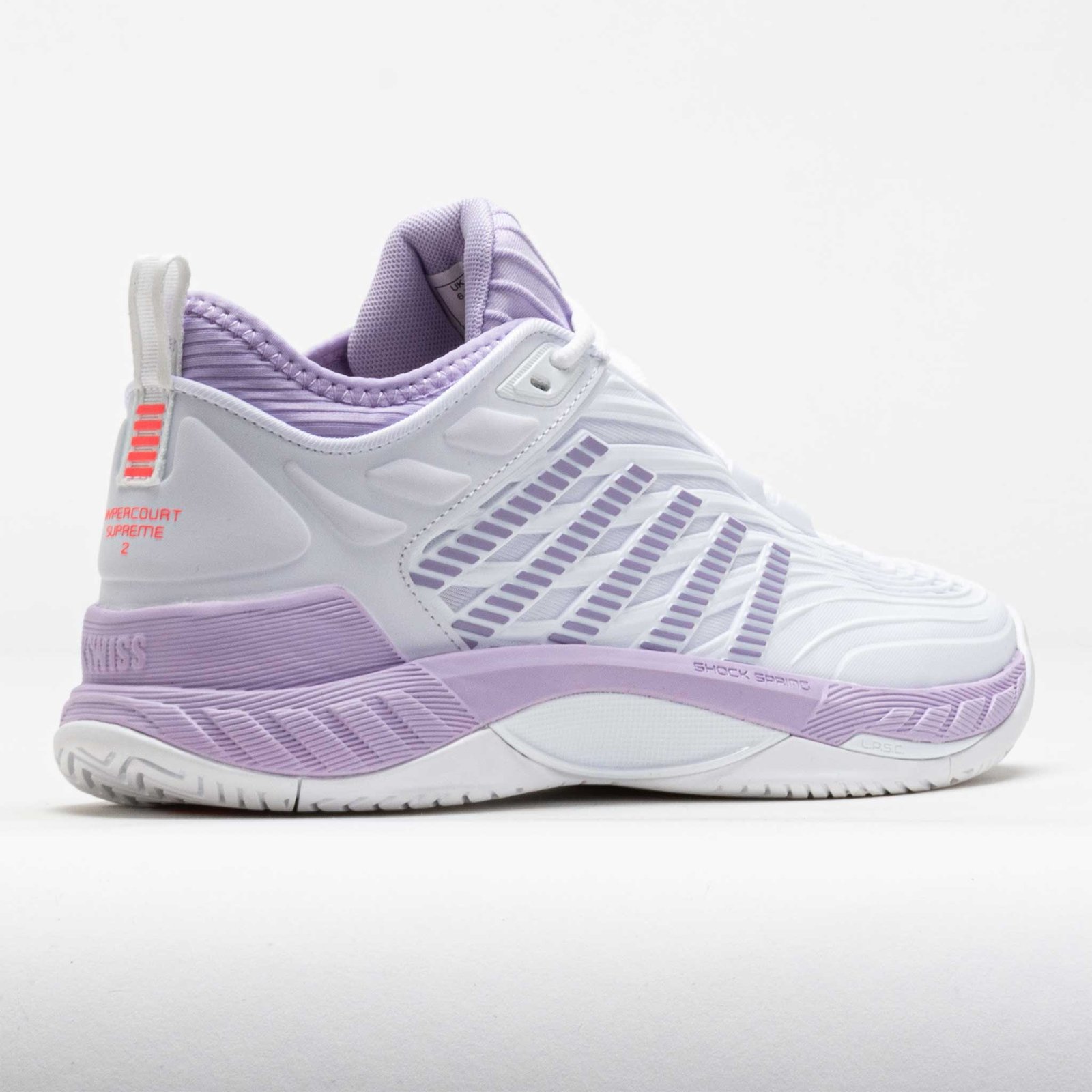 Reach your potential in the K-Swiss Hypercourt Supreme 2! This tennis shoe keeps you comfortable with a secure fit. extra durability. and improved support. Stay protected while sprinting around the court in the Durawrap X upper. The dual-density midsole features a Surgelite outer foam and a Shock Spring inner foam for quick reactions. Enjoy traction and durability on any surface under the DragGuard 7.0 rubber outsole. Soft. light and responsive. the K-Swiss Hypercourt Supreme 2 brings you to the ball faster!