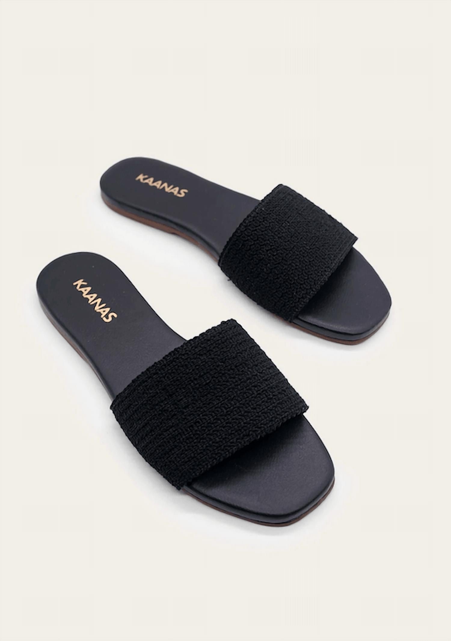 Flowy dresses, cropped pants, and even jumpsuits… this sandal works with them all!Step into style with the Women’s Kaanas Mallow Sandals by KAANAS, a sleek and comfortable streetwear staple in black. With an upper crafted from 100% cotton and a leather innersole, these sandals feature a rubber sole and an open toe design for a chic, flat heel style. Ideal for spring engagements, these sandals offer narrow width with true-to-size length, recommended to size up for half-sizes and wider feet. Embrace sunny days with unparalleled comfort and effortless elegance.